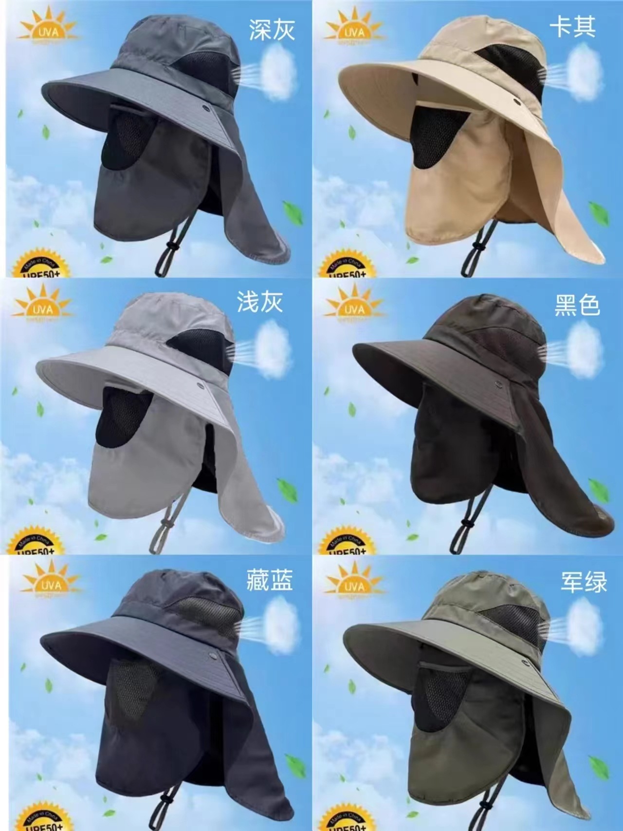 야외 얼굴을 가리는 목-보호 선 스크린 모자 남자의 여름 이동식 대형 브림 안티-UV 햇빛 낚시 모자 등산 모자