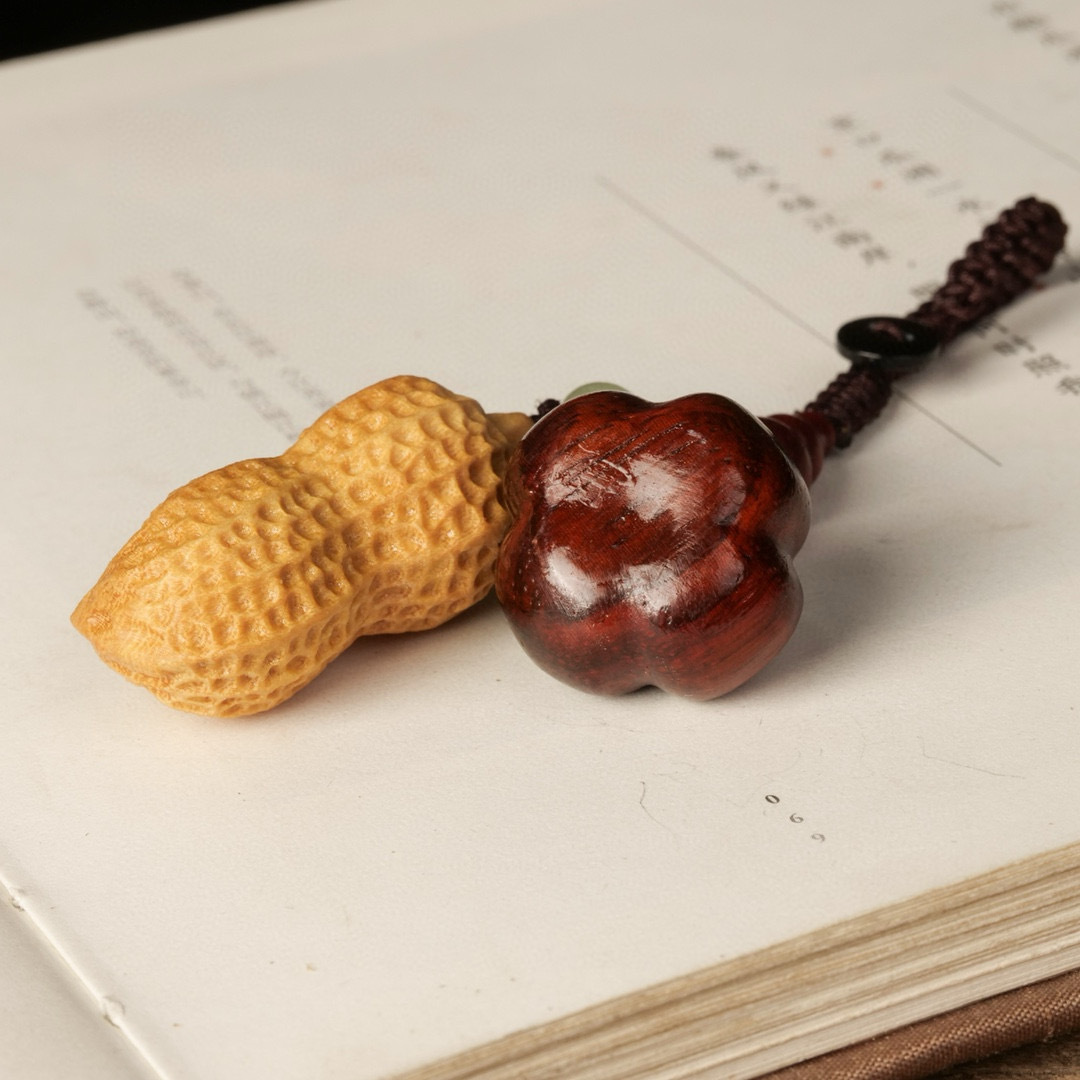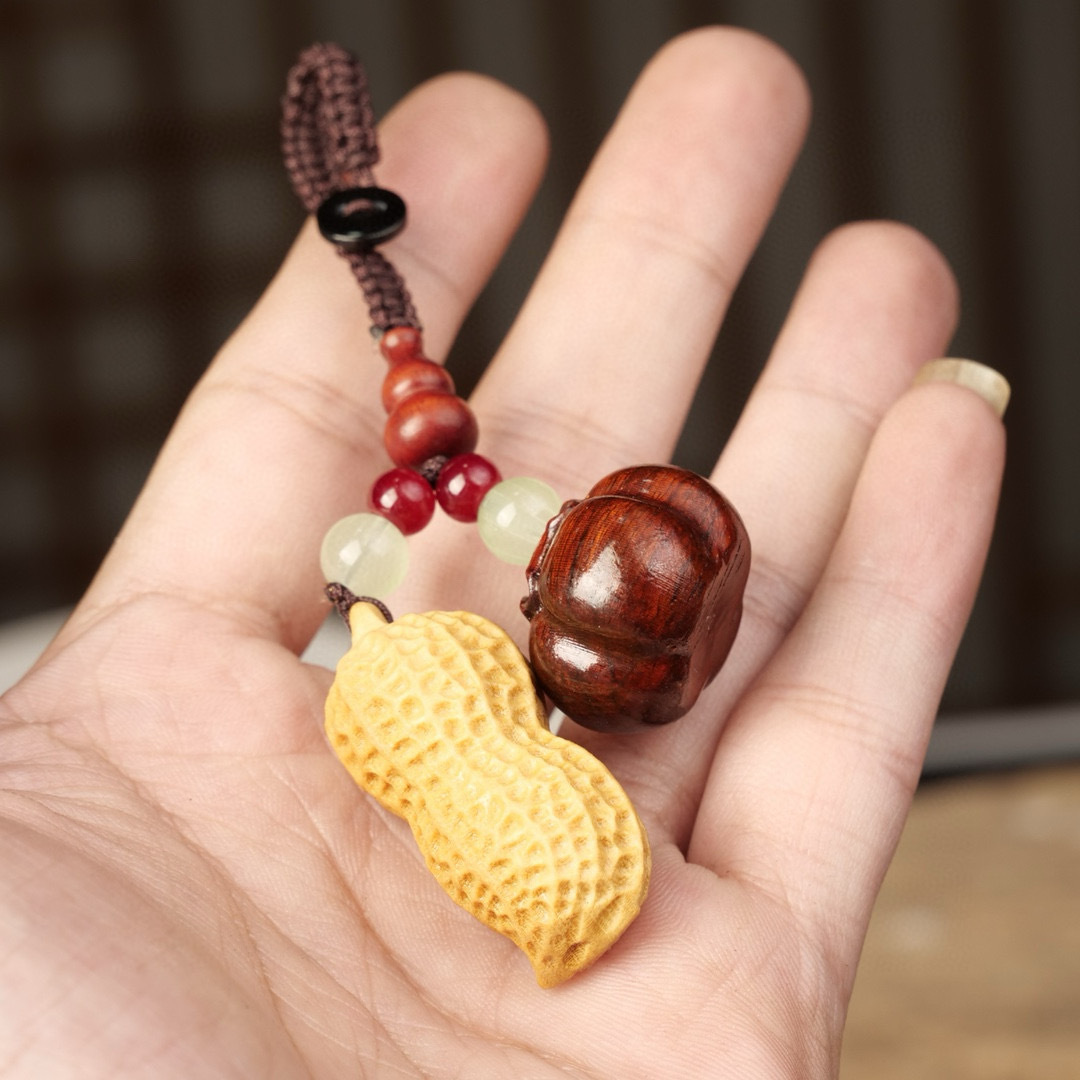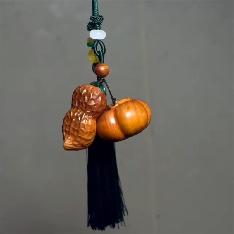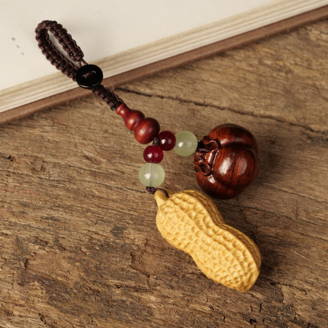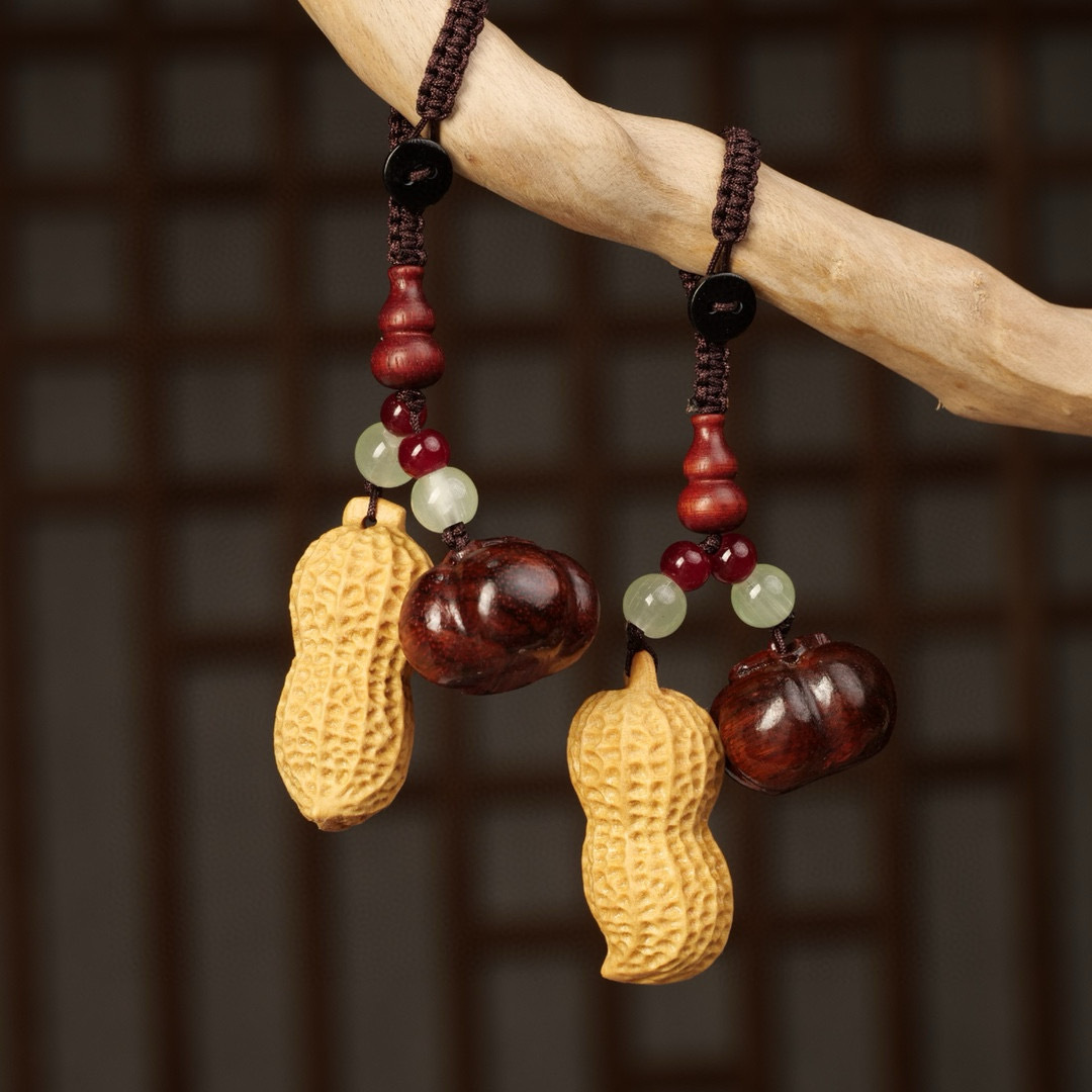 레드 샌달 우드 감 땅콩 자동차 키 체인 펜던트 창조적 인 안전한 행운의 복고풍 커플 보석 매달려 좋은 일이 일어납니다.