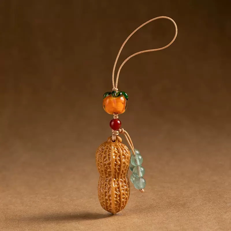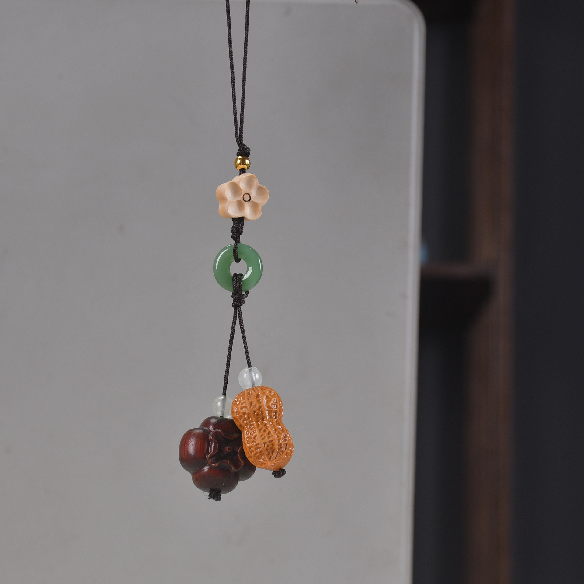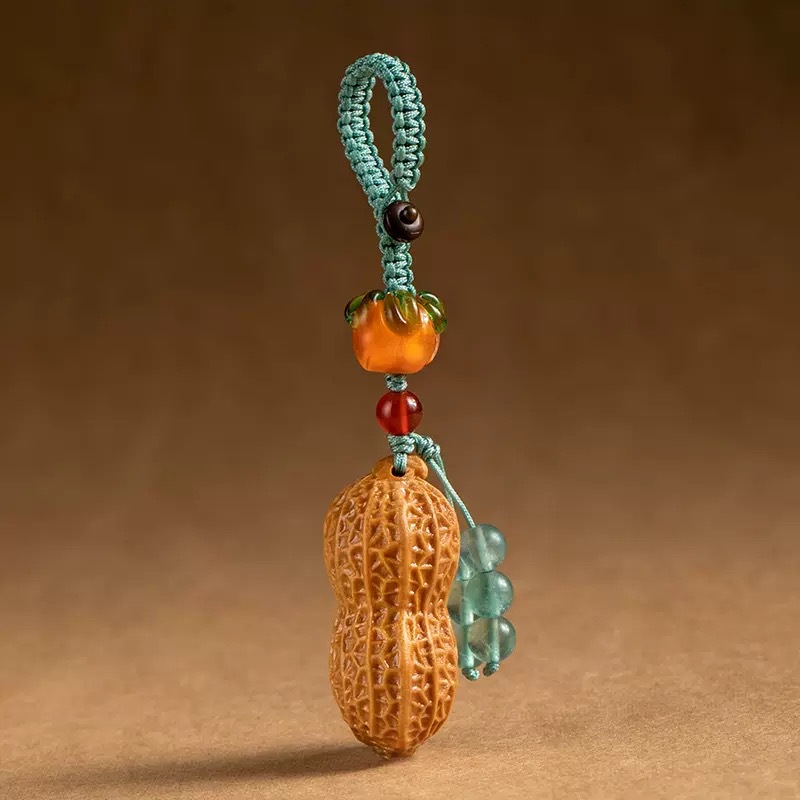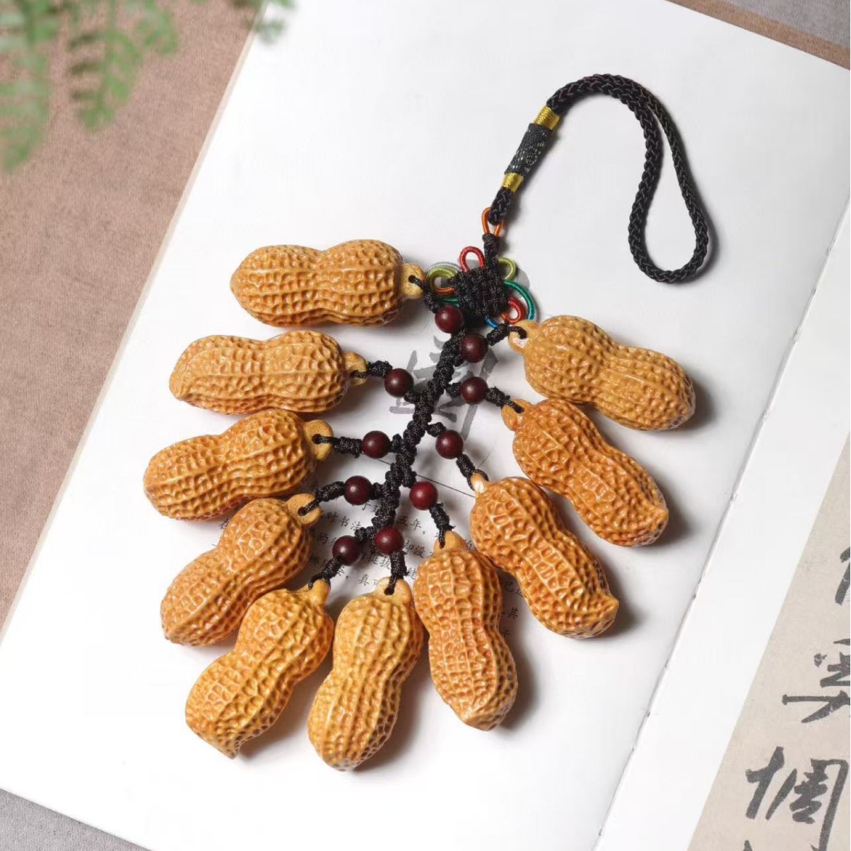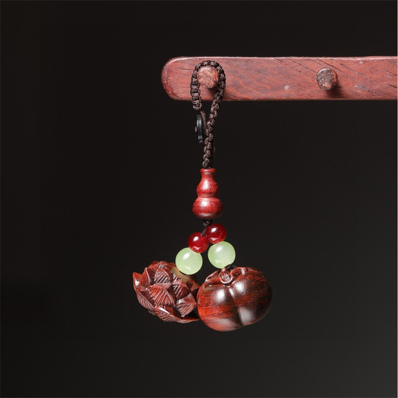 레드 샌달 우드 감 땅콩 자동차 키 체인 펜던트 창조적 인 안전한 행운의 복고풍 커플 보석 매달려 좋은 일이 일어납니다.