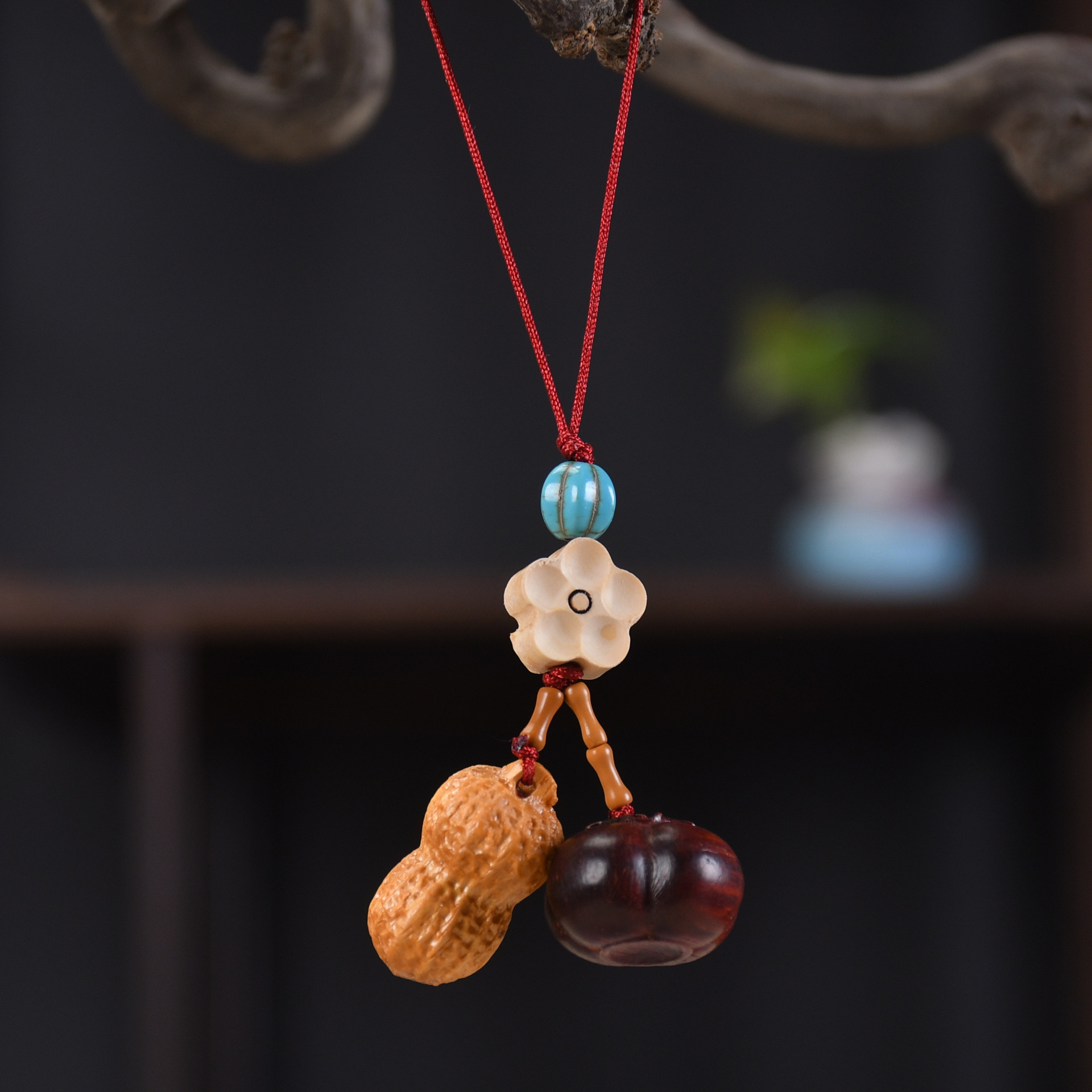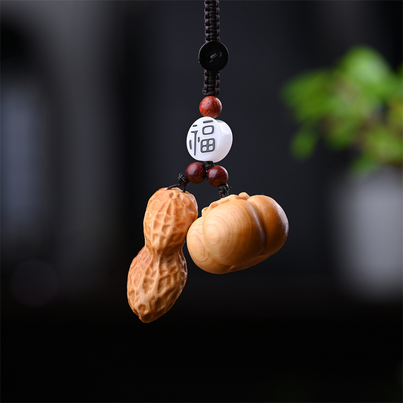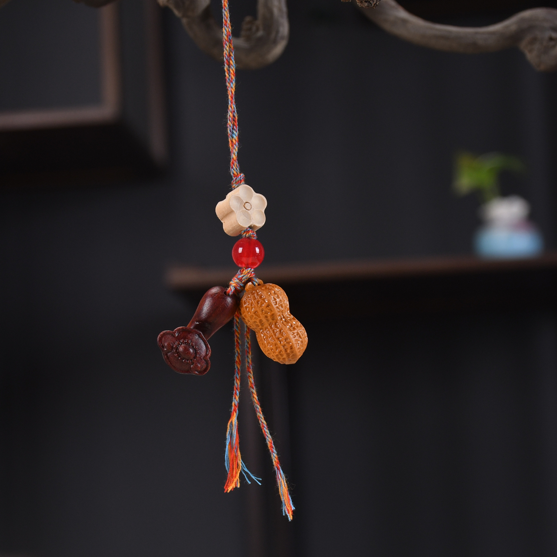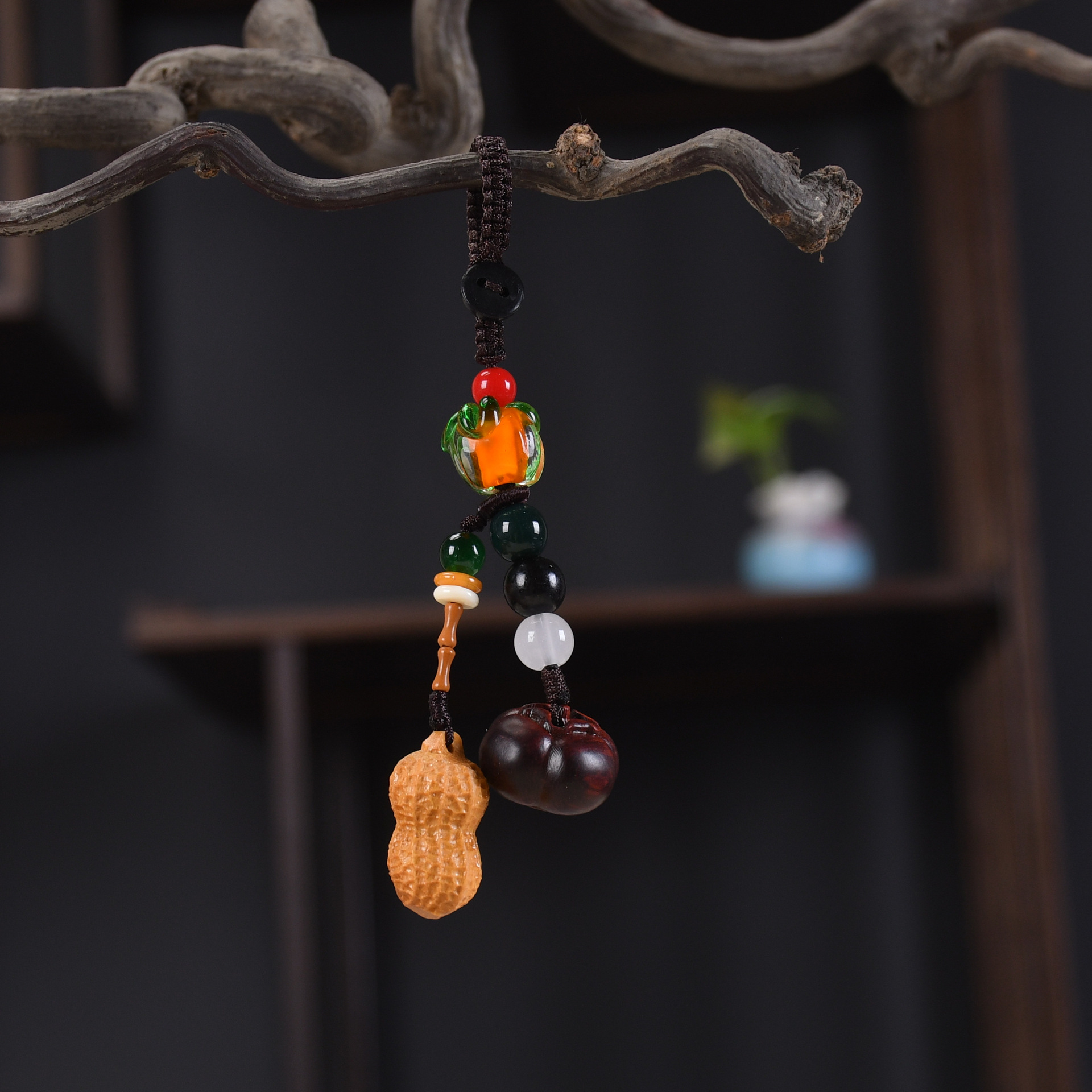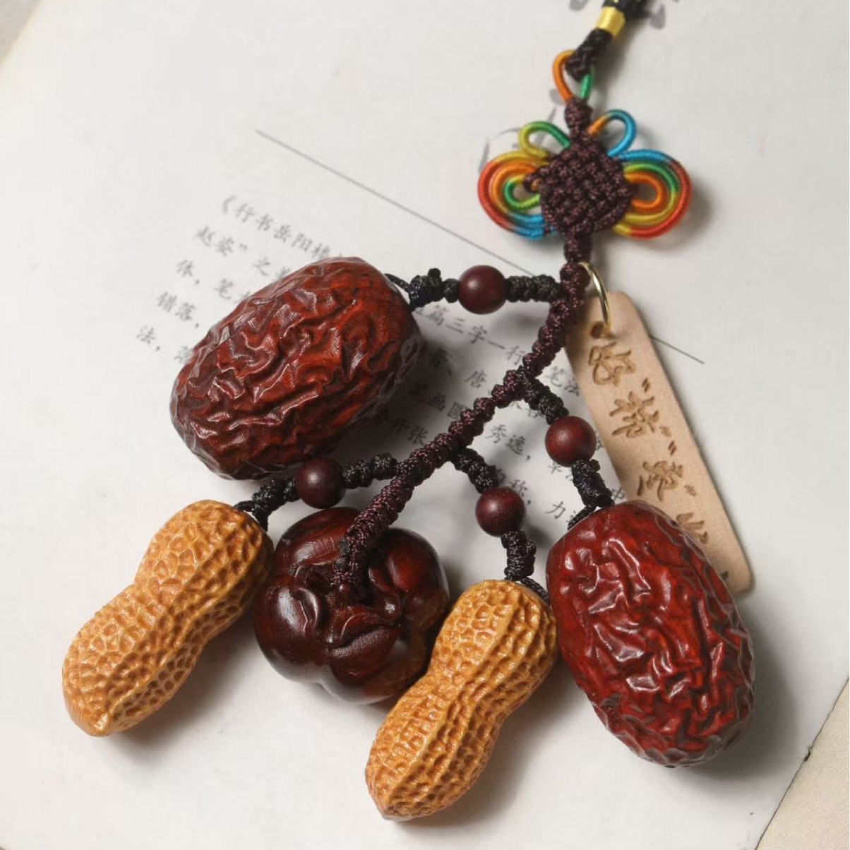 레드 샌달 우드 감 땅콩 자동차 키 체인 펜던트 창조적 인 안전한 행운의 복고풍 커플 보석 매달려 좋은 일이 일어납니다.스토어 가기