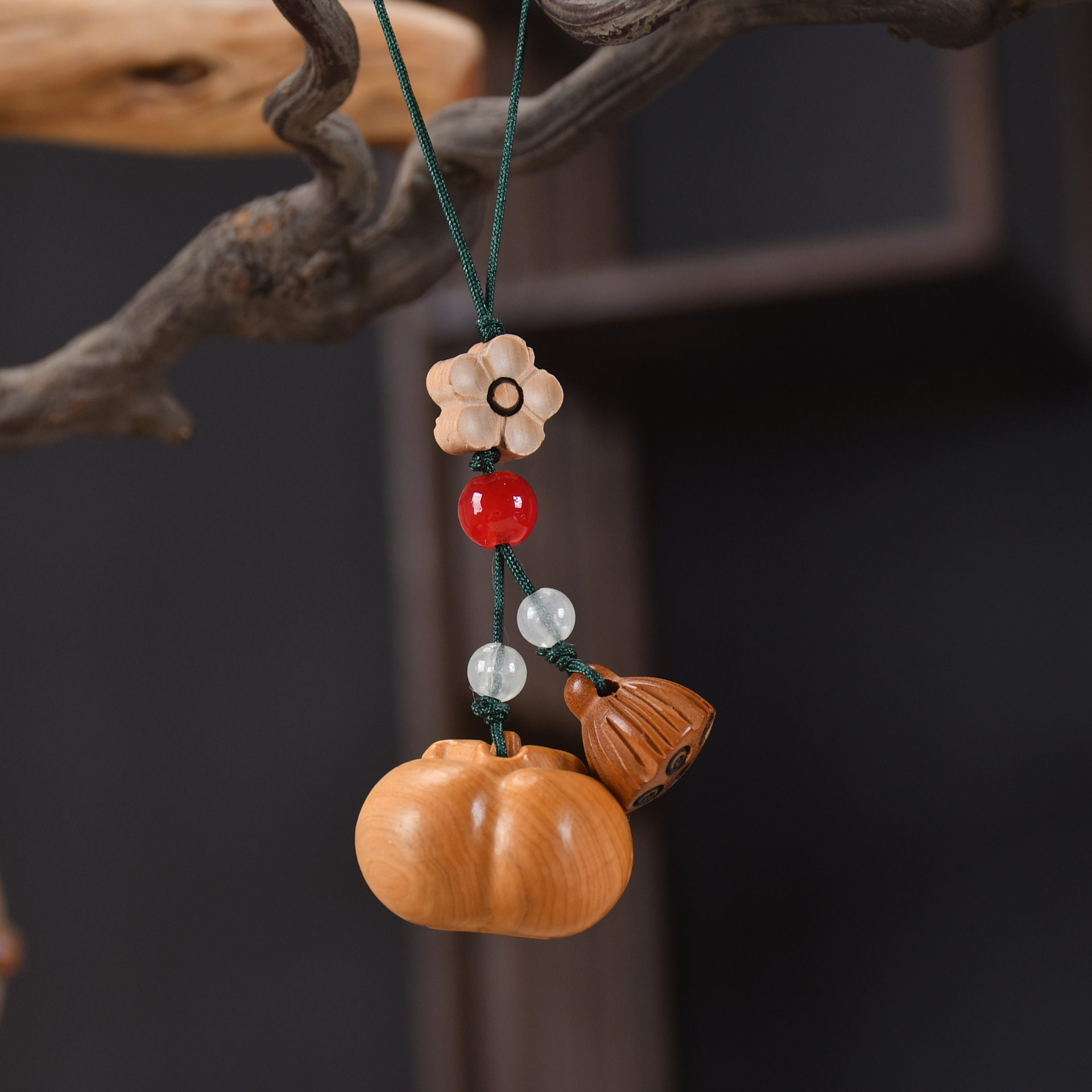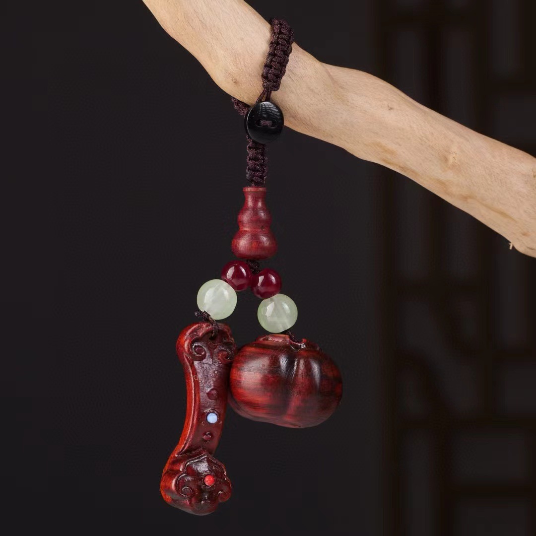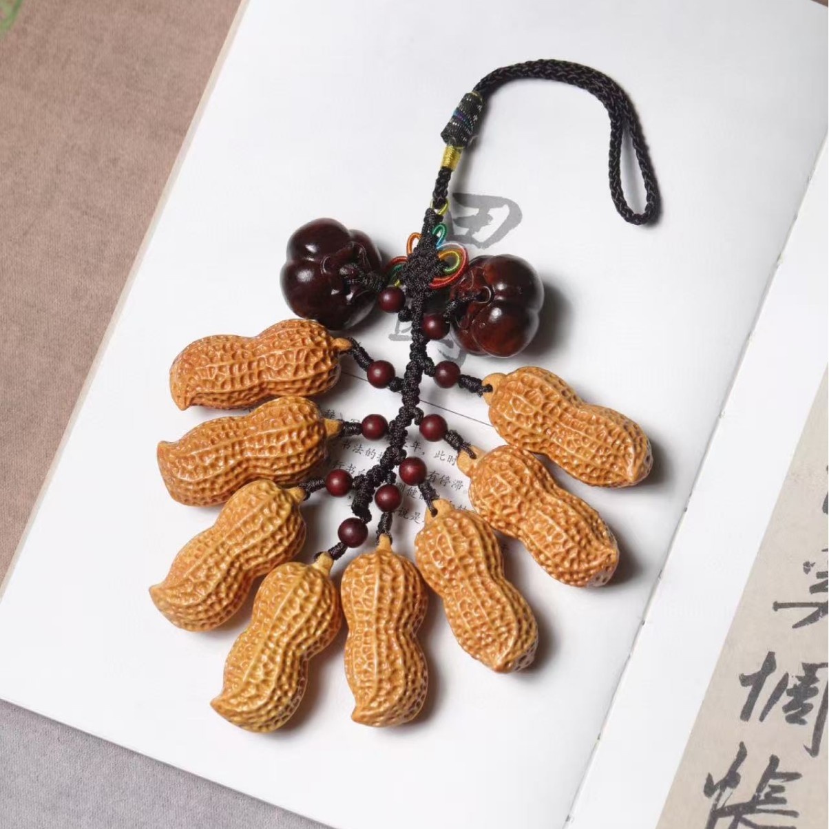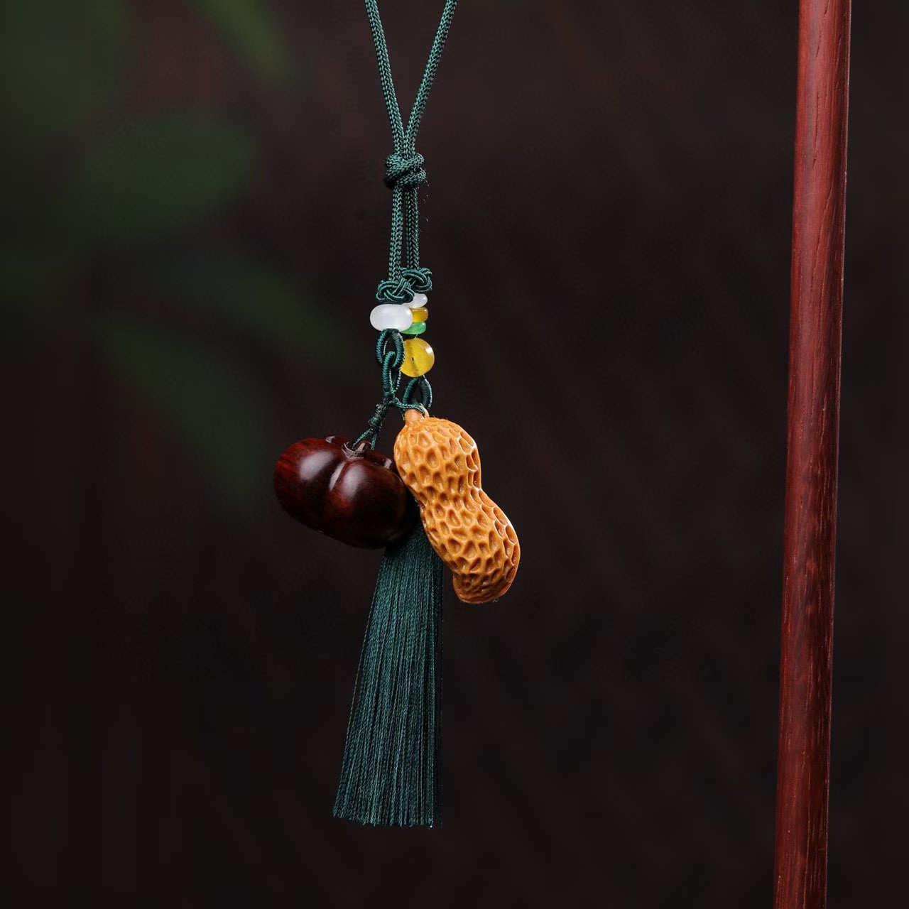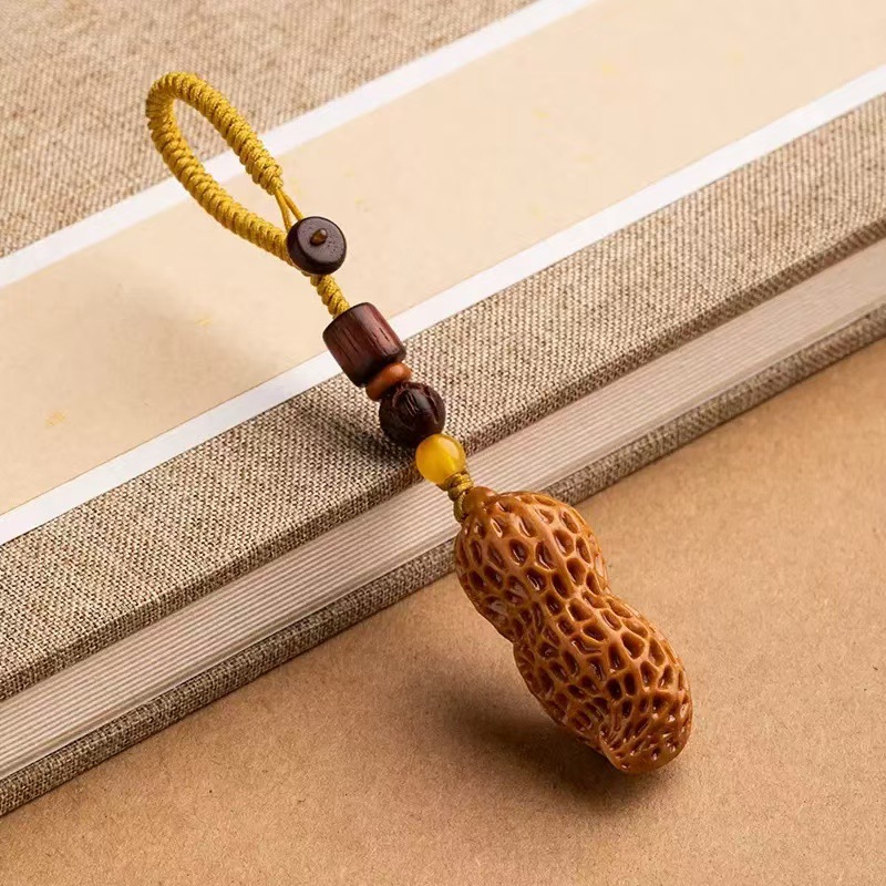레드 샌달 우드 감 땅콩 자동차 키 체인 펜던트 창조적 인 안전한 행운의 복고풍 커플 보석 매달려 좋은 일이 일어납니다.스토어 가기