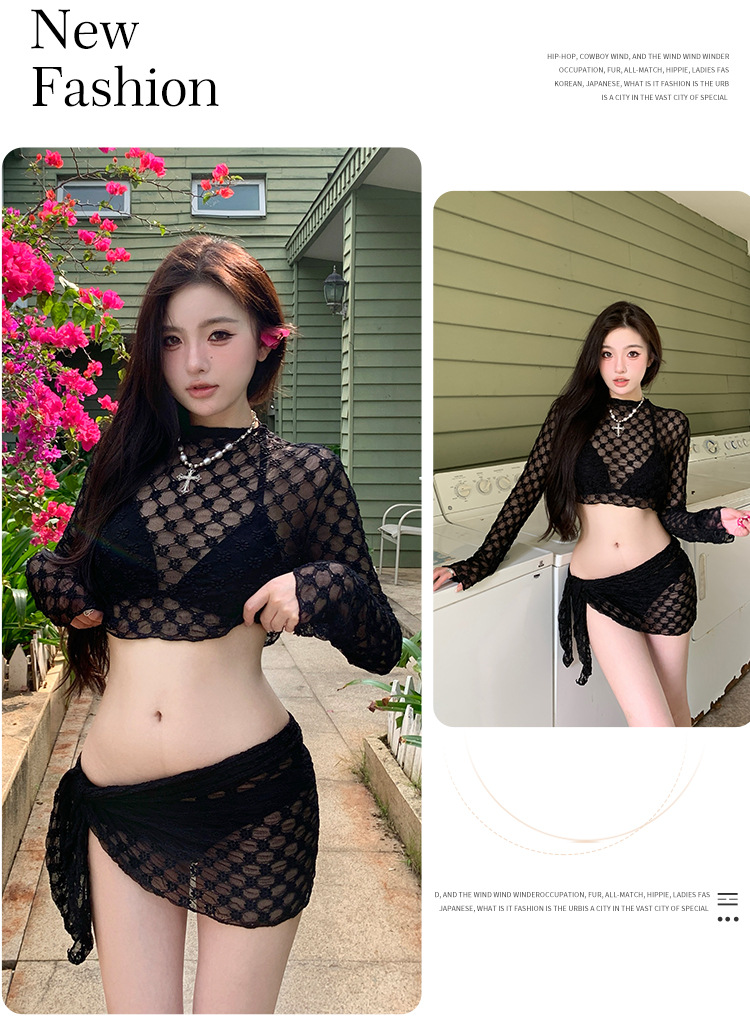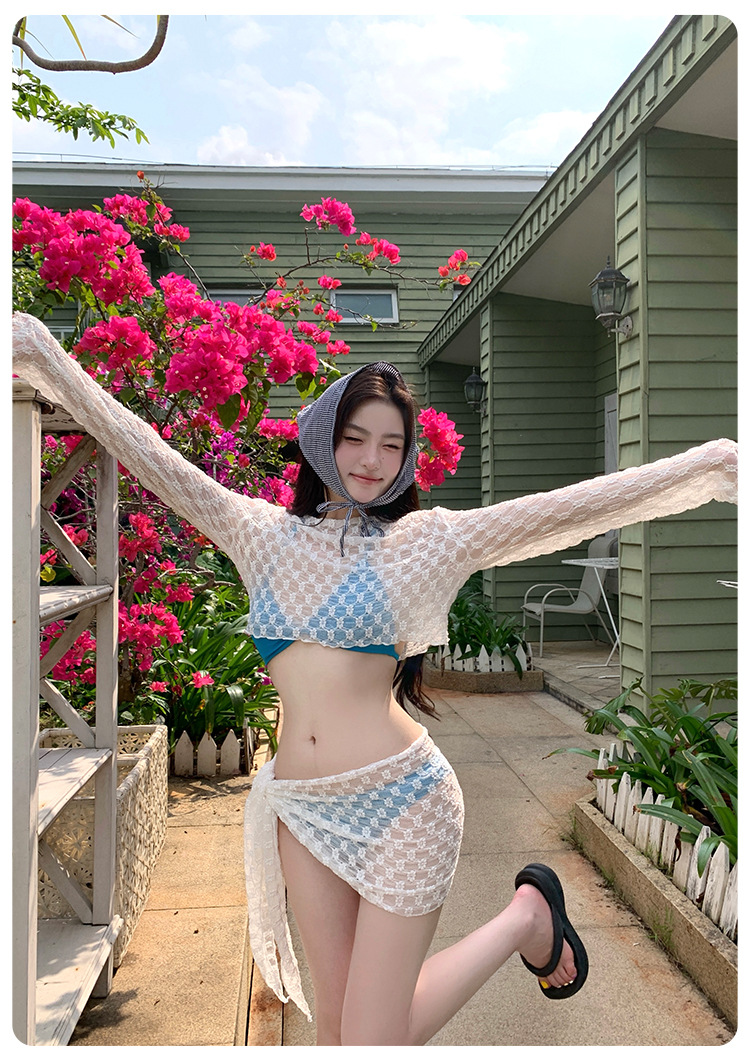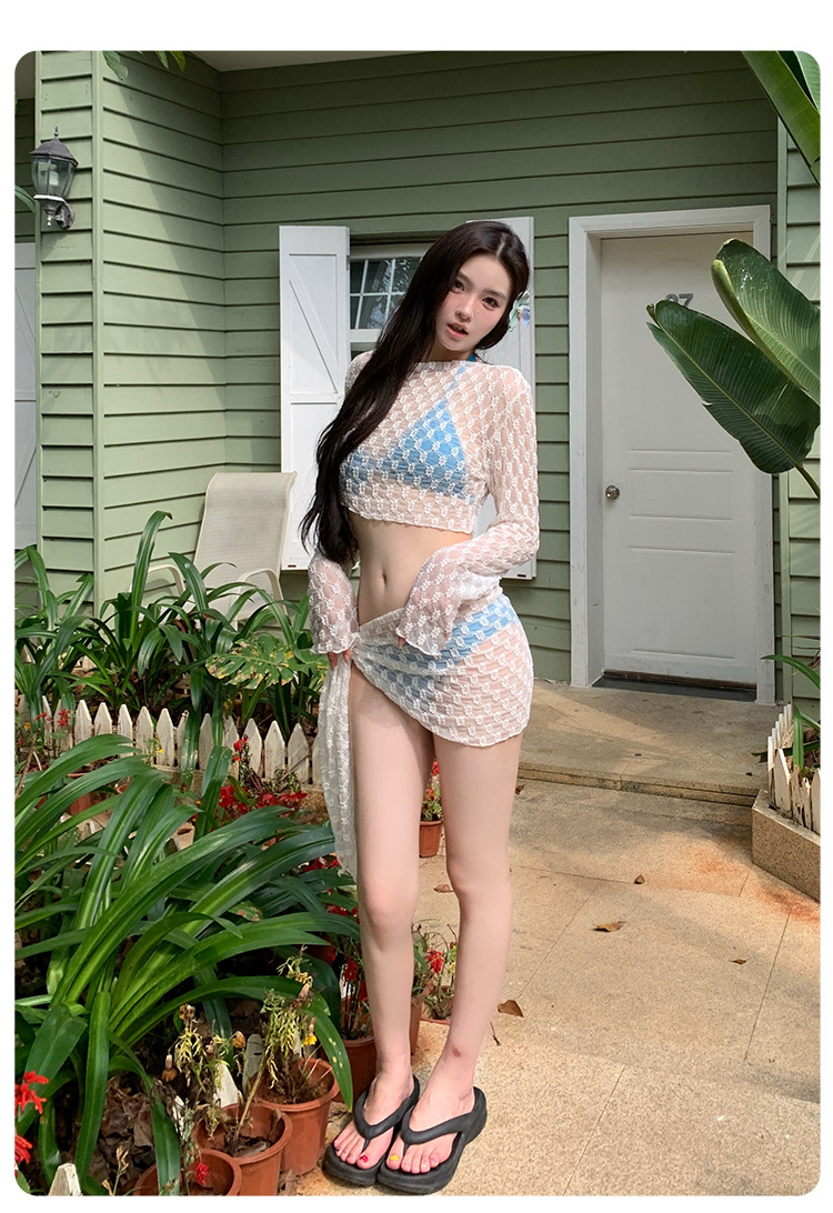 순수한 욕망 비키니 네 조각 연인 스파이스 소녀 분할 수영복 여성용 섹시한 작은 가슴 긴 소매 블라우스 온천 수영복