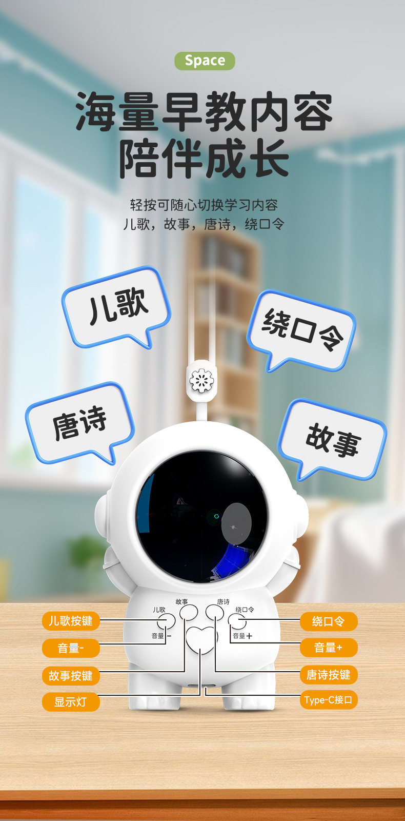 우주 비행사 이야기 기계 어린이 교육 장난감 아기 깨달음 퍼즐 노래 우주 비행사 이야기 기계 선물 도매스토어 가기