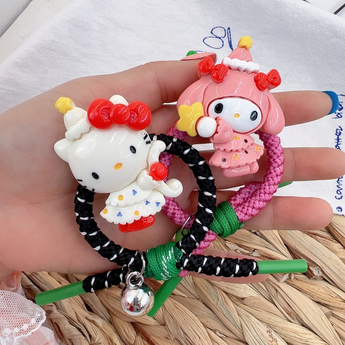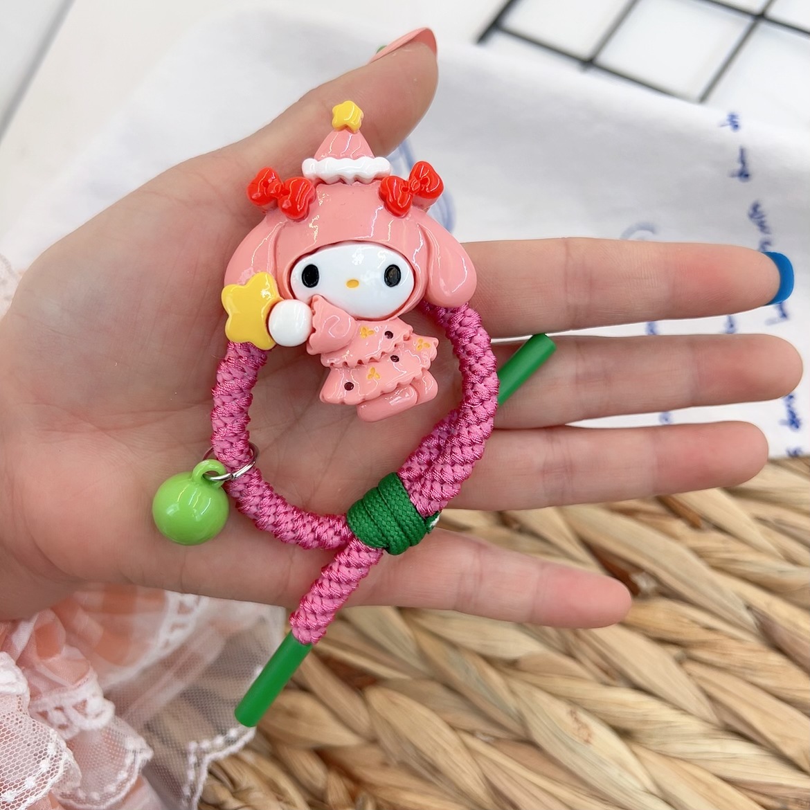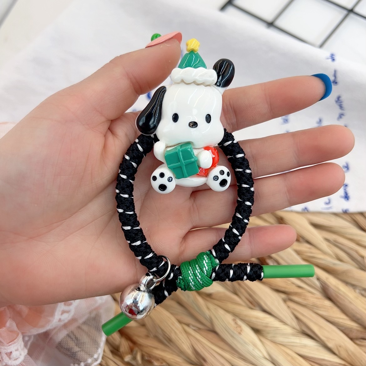 귀여운 만화 소녀 하트 헤드폰 핑크 매듭 헤어 로프 한국 동대문 유치한 시대 감소 포니 테일 헤어 로프 여성스토어 가기