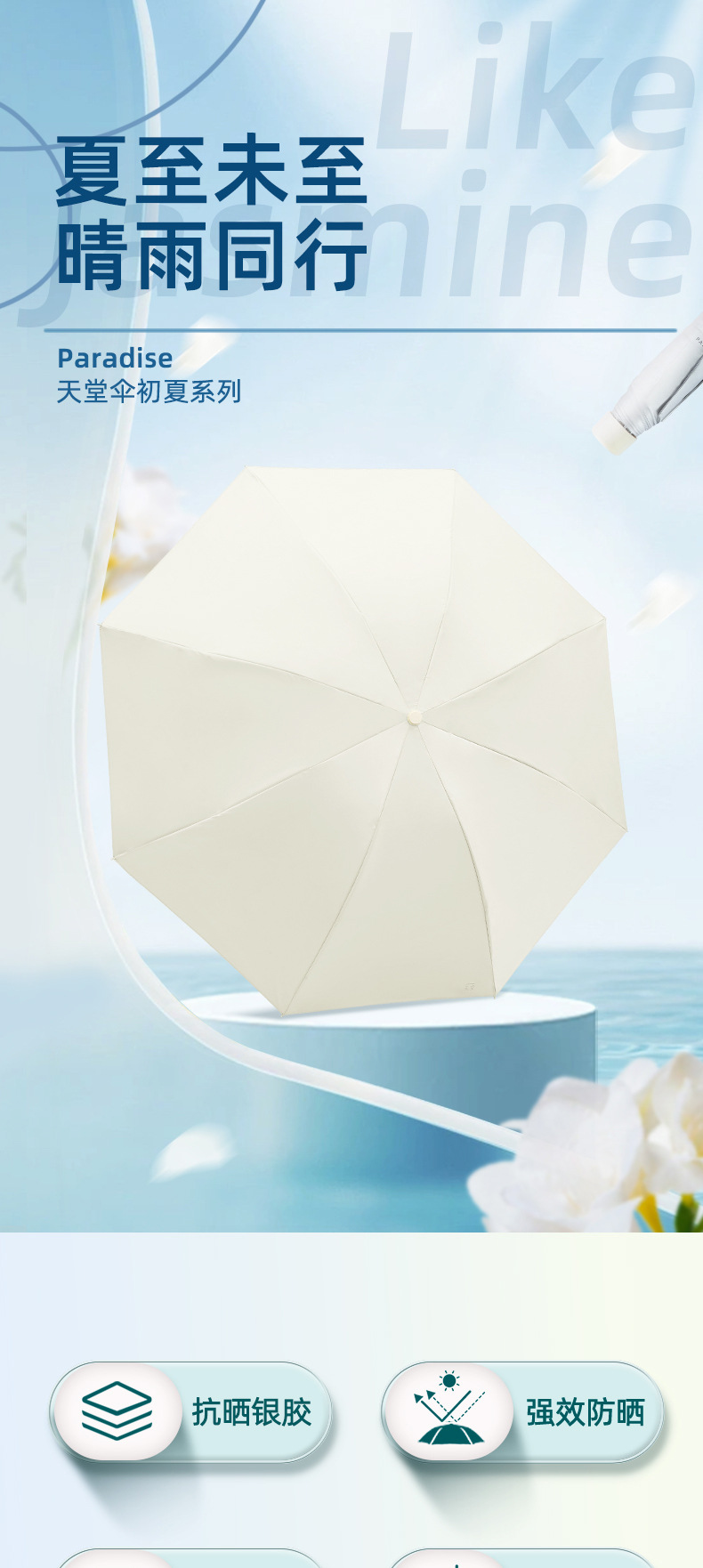 파라다이스 우산 파라솔 솔리드 컬러 태양 보호 UV 70% off 스택 비 또는 빛 태양 우산 실버 접착제 남성과 여성 도매스토어 가기