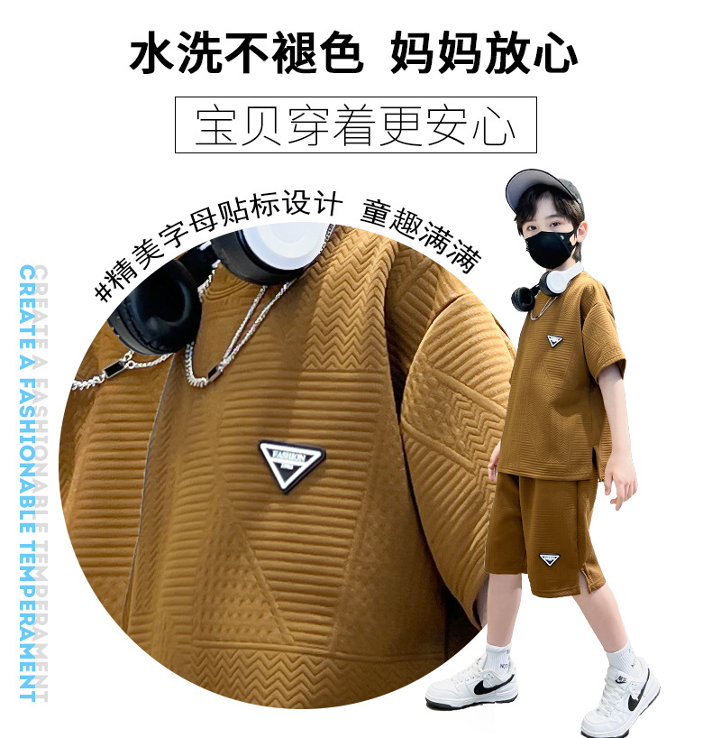 JX 아동복 소년 여름 스포츠 세트 어린이 서양식 반팔 반바지 투피스 세트 2024 중 큰 어린이 여름 패션스토어 가기