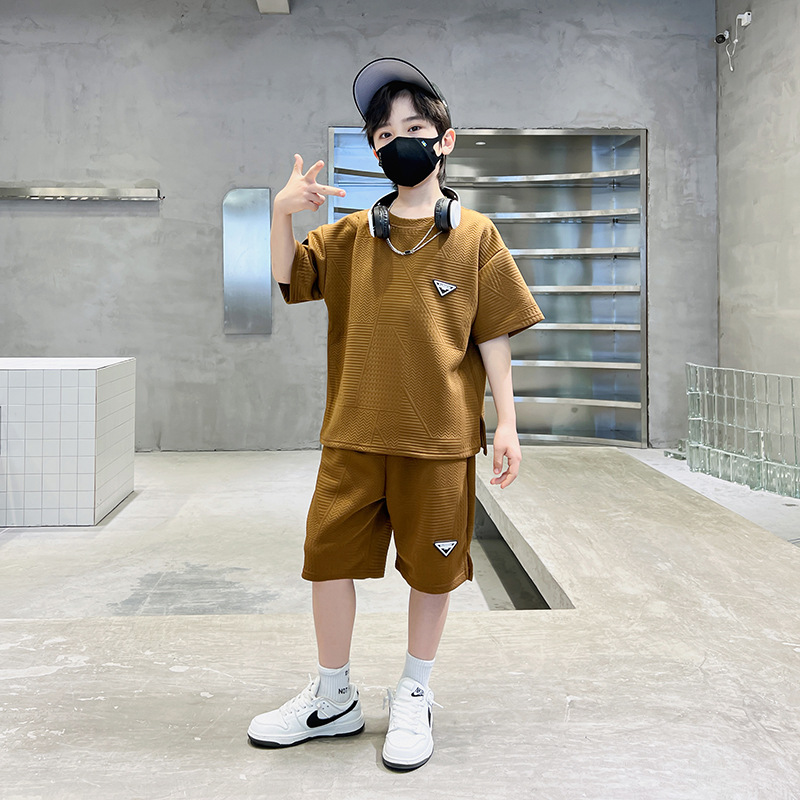 JX 아동복 소년 여름 스포츠 세트 어린이 서양식 반팔 반바지 투피스 세트 2024 중 큰 어린이 여름 패션