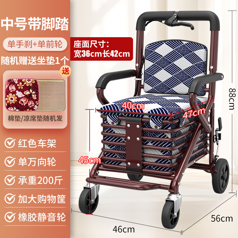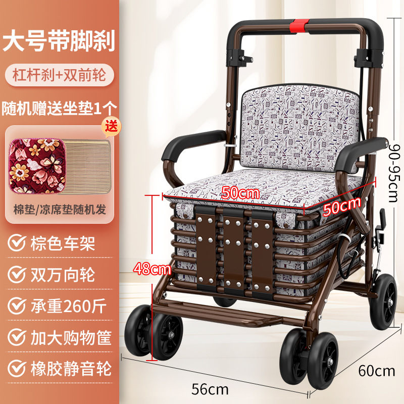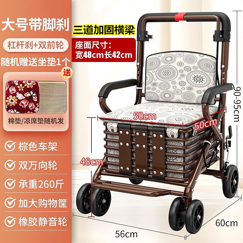 노인 스쿠터 쇼핑 카트는 노인 4 륜 보행 부스터 카트를 위해 브레이크 접이식 카트로 밀 수 있습니다.스토어 가기