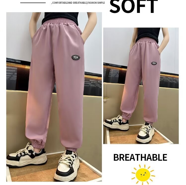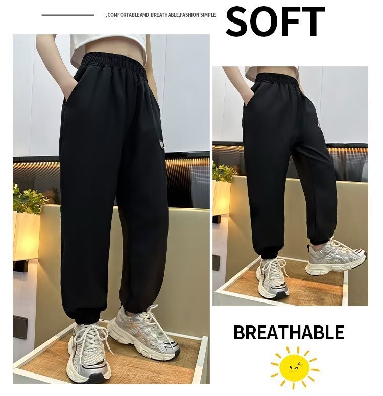 소녀 여름 아이스 실크 캐주얼 바지 한국식 소녀 안티 모기 바지 여름 패션 서양식 어린이 아이스 실크 바지스토어 가기