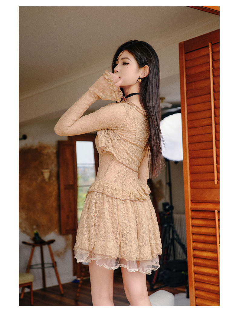 수영복 여성용 여름 새로운 섹시한 레이스 러플 슬림 핏 벨리 커버 긴팔 태양 보호 블라우스 투피스 홀리데이 수영복