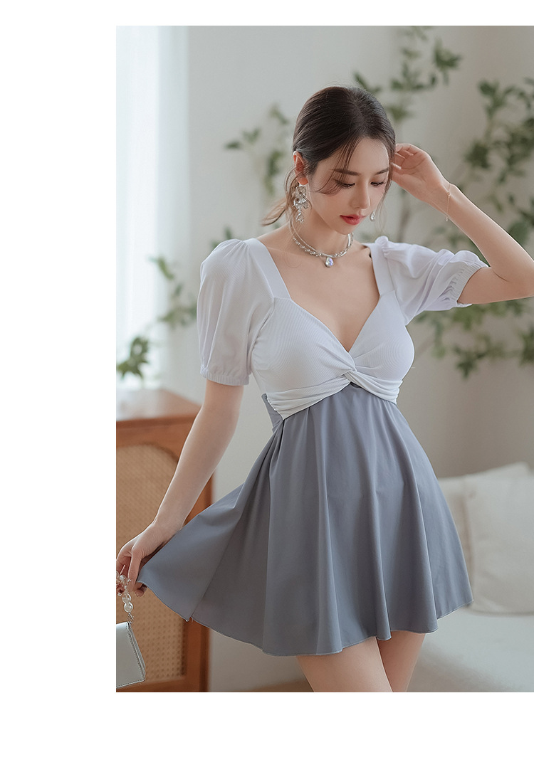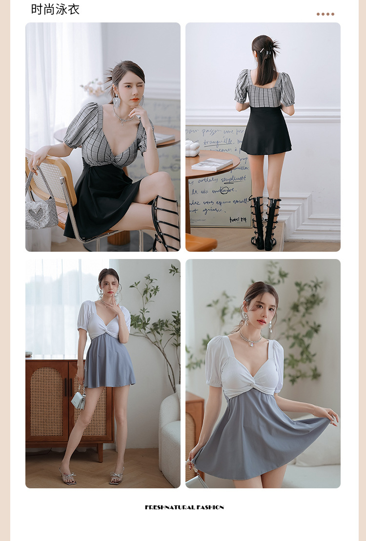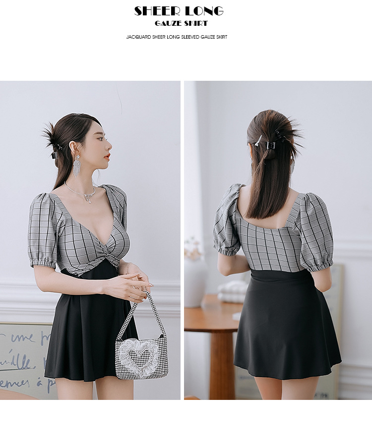 빈티지 격자 무늬 수영복 여성 여름 섹시한 V-목 크기 가슴 푸시 업 바디 스커트 플러스 사이즈 통통녀 온천 수영복스토어 가기