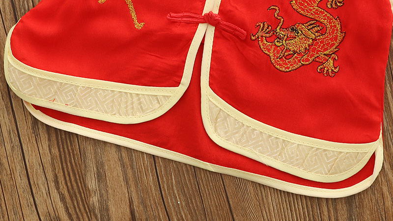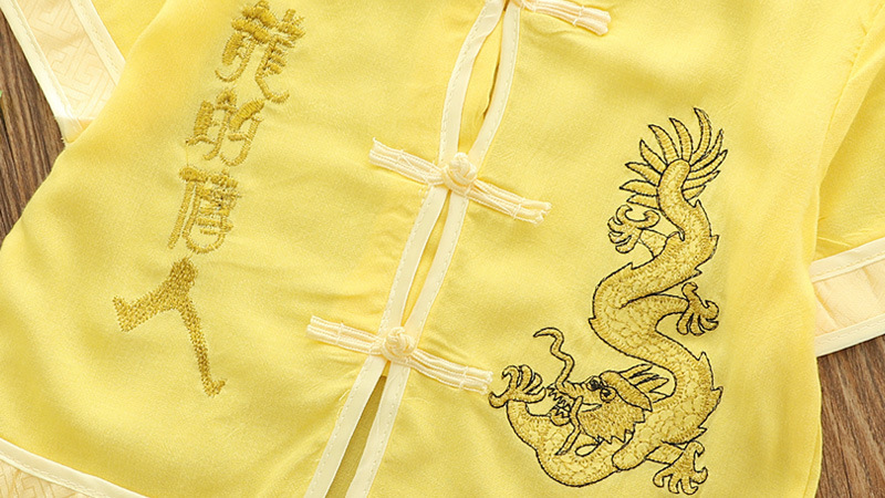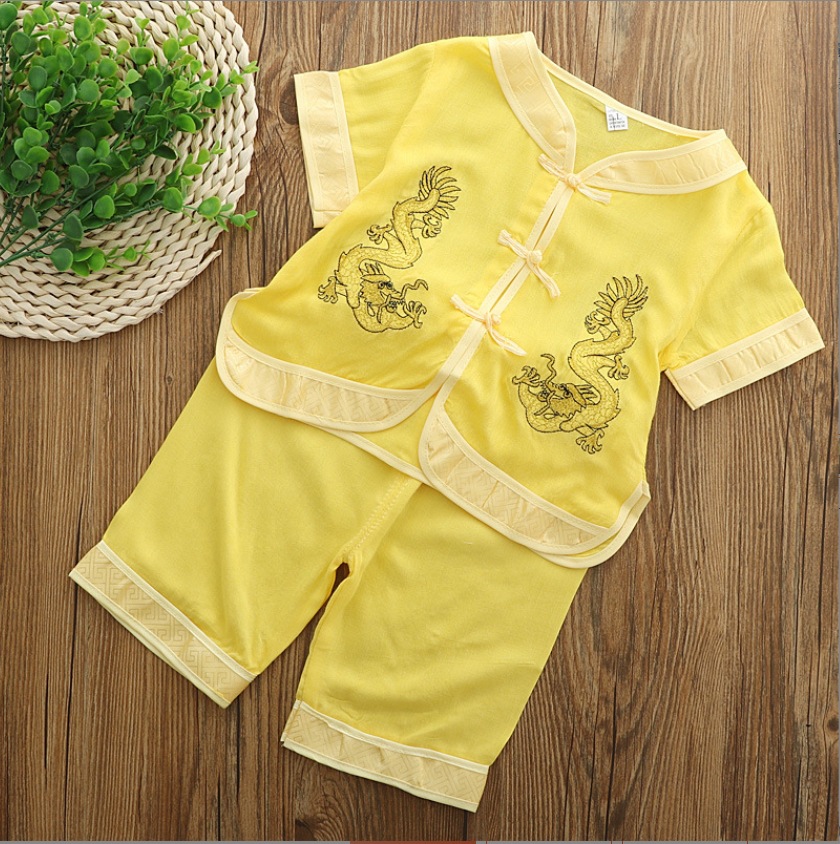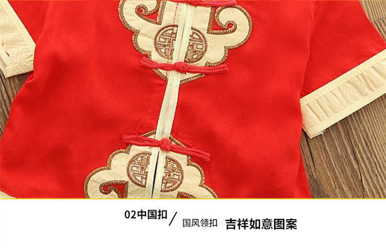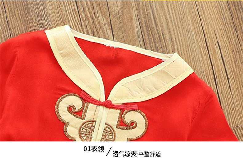 2024 년 중국 스타일 소년 백일 사진 복권 탕 코트 실크 반팔 세트 더블 기린 소년 당나라 코트 공연
