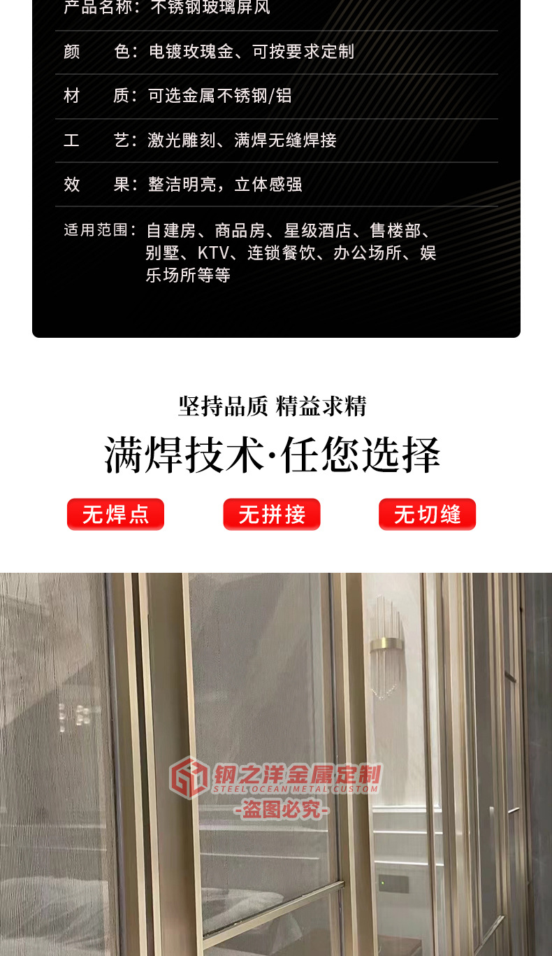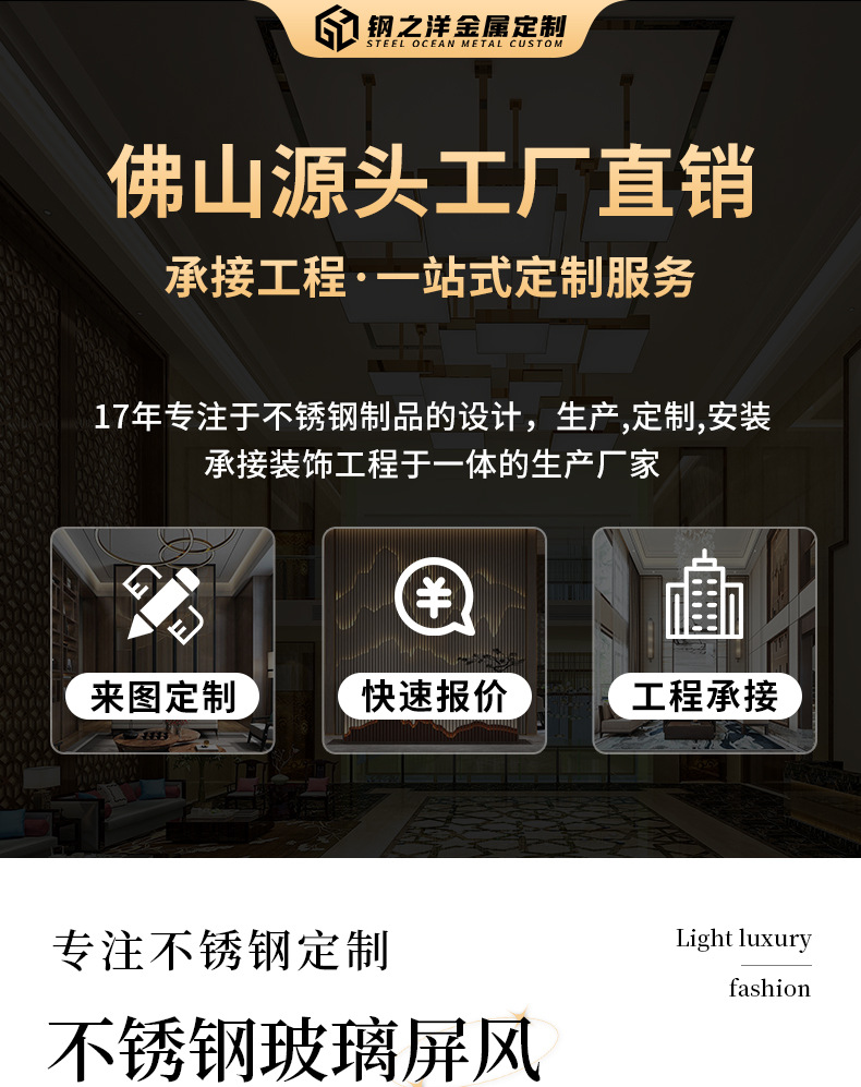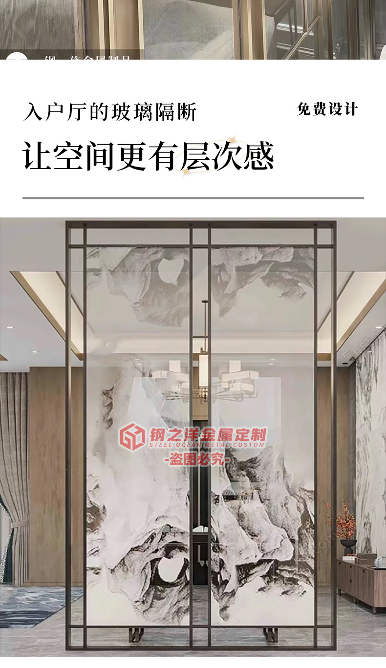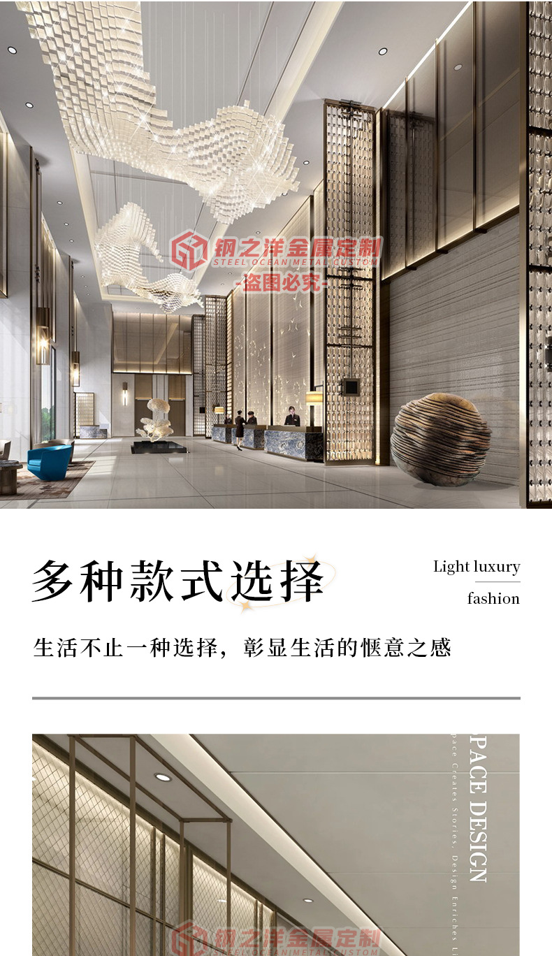 호텔 스테인레스 스틸 부스 파티션 아트 유리 스크린 판매 사무실 홀 금속 장식 화면 도매스토어 가기