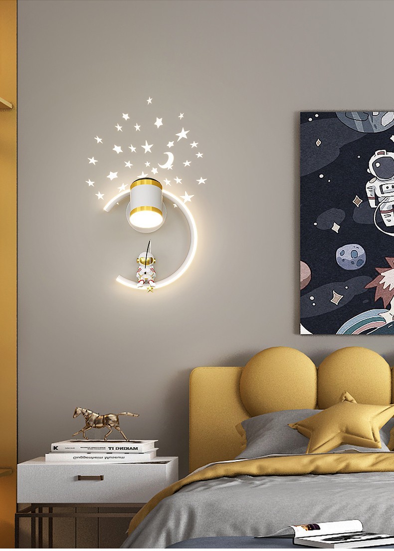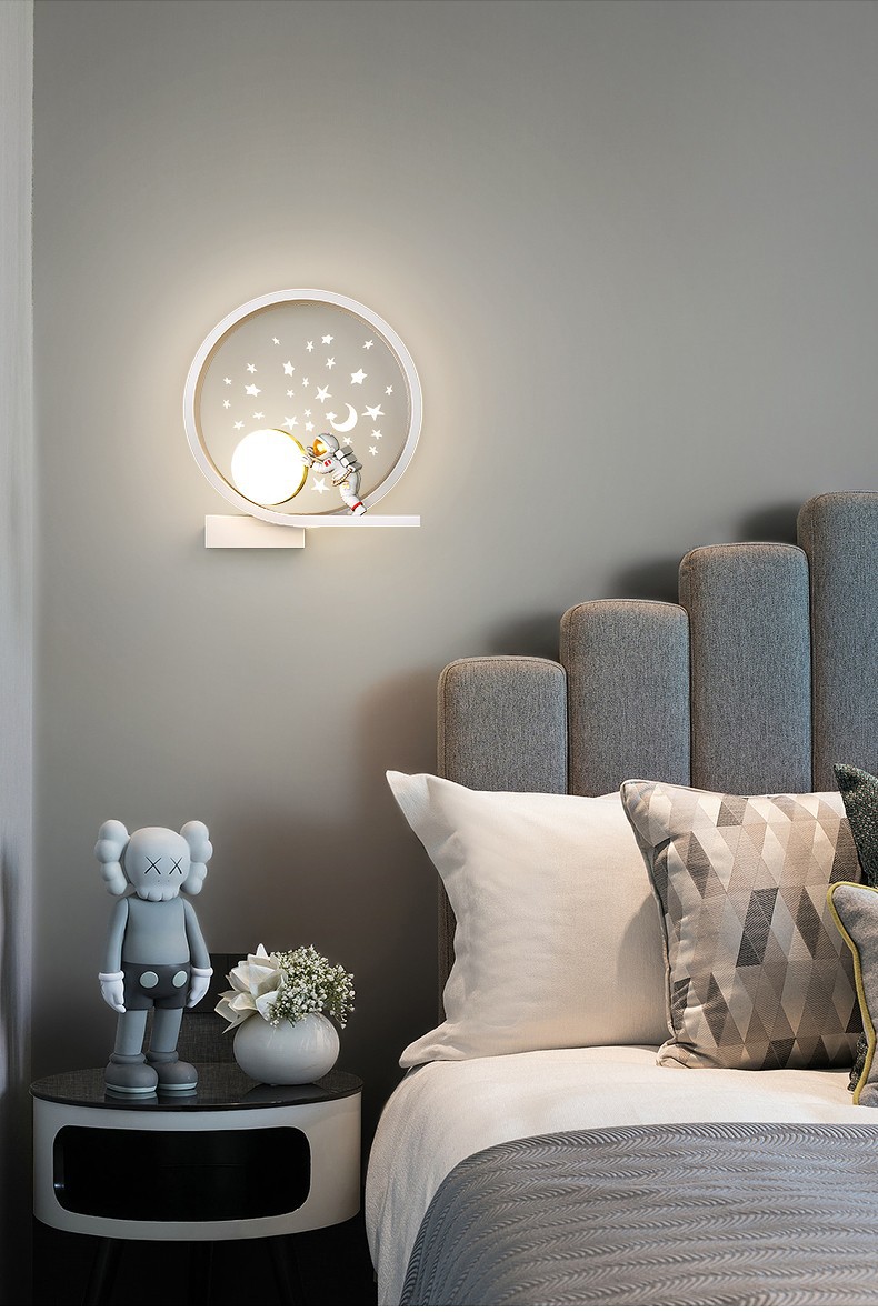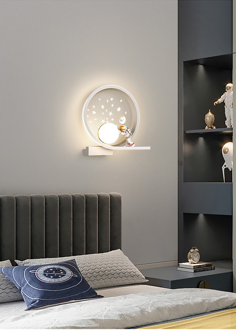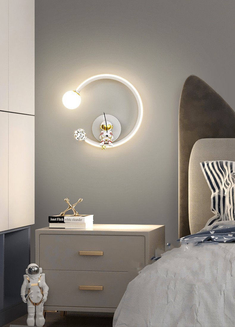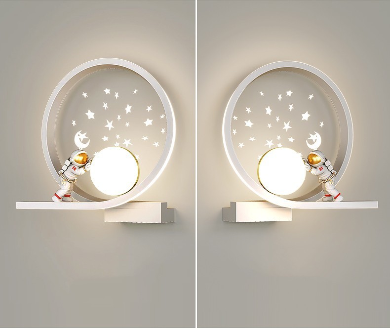 어린이 방 창조적 인 만화 벽 램프 현대 간단한 우주 비행사 소년 소녀 배경 벽 침대 옆 램프