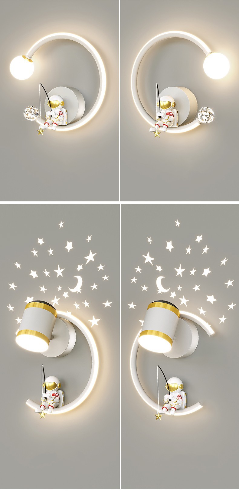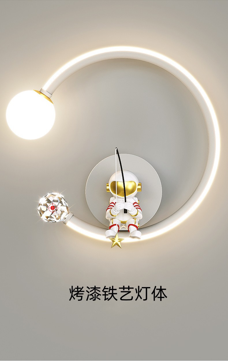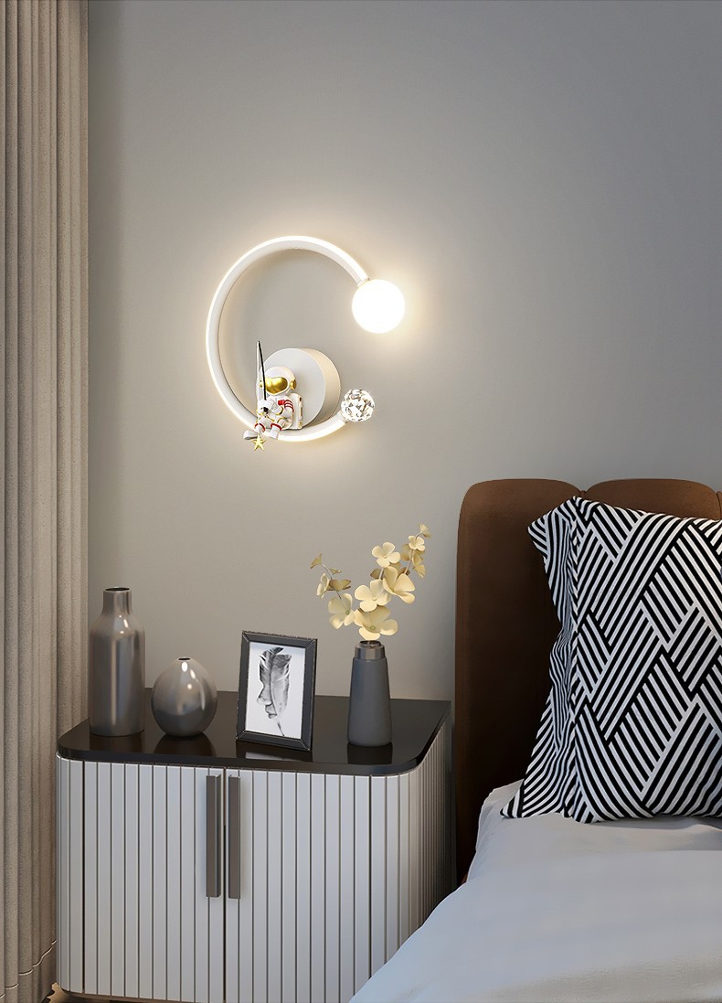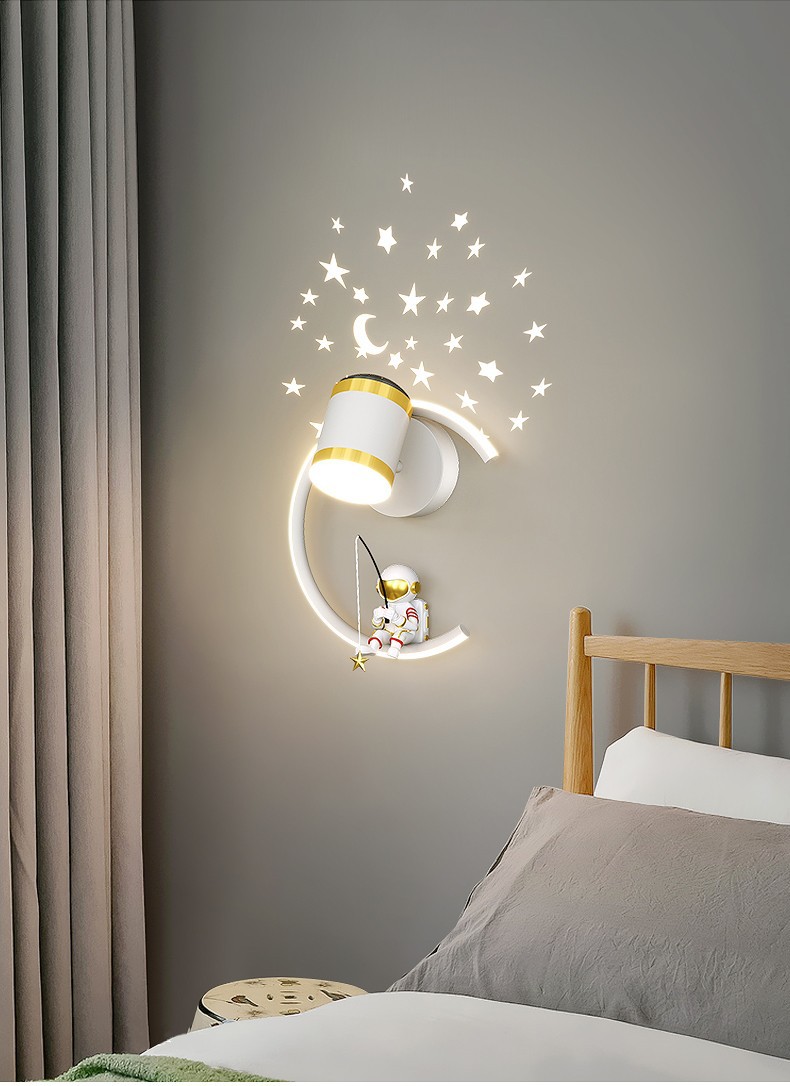 어린이 방 창조적 인 만화 벽 램프 현대 간단한 우주 비행사 소년 소녀 배경 벽 침대 옆 램프