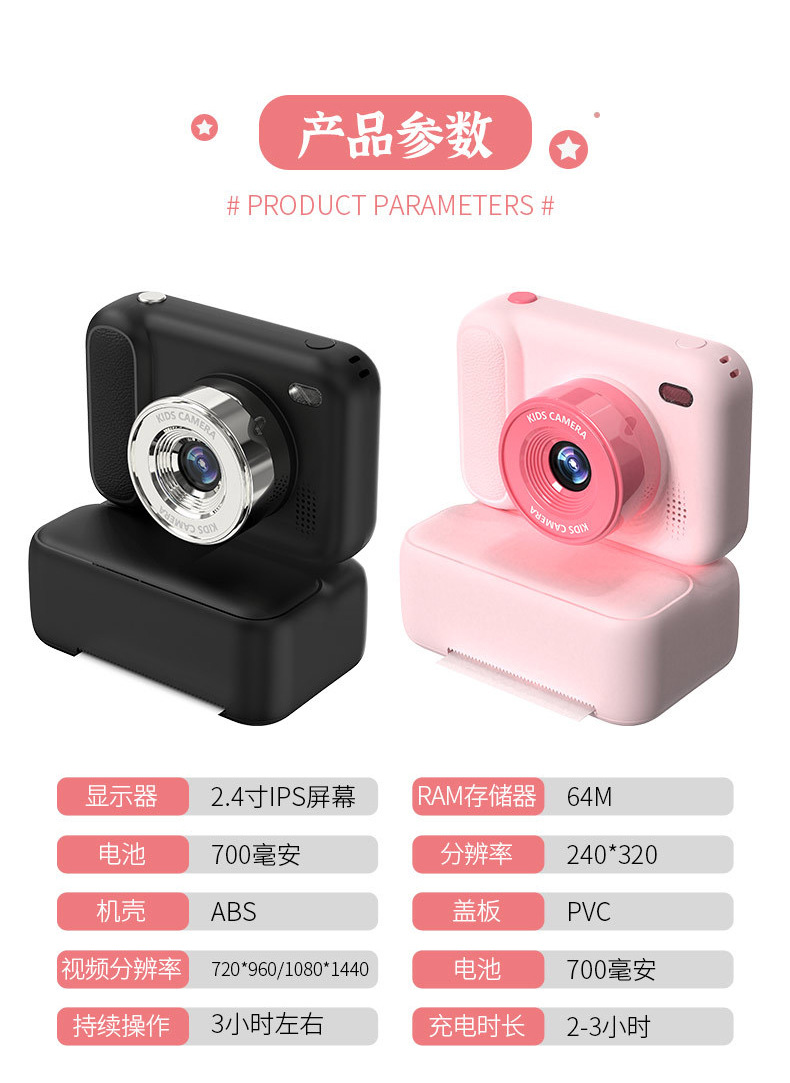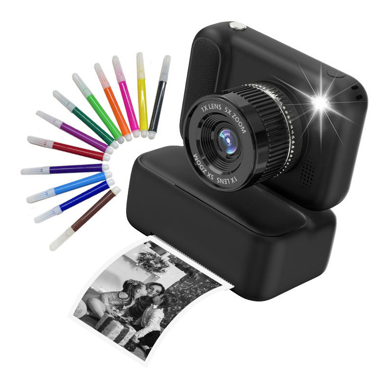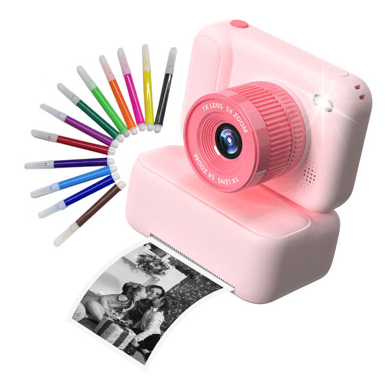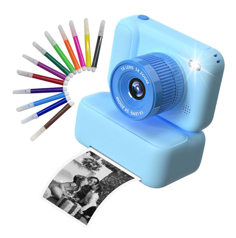국경 새로운 스마트 디지털 어린이 너구리 미니 열 인쇄 카메라 전면 및 후면 HD 듀얼 카메라