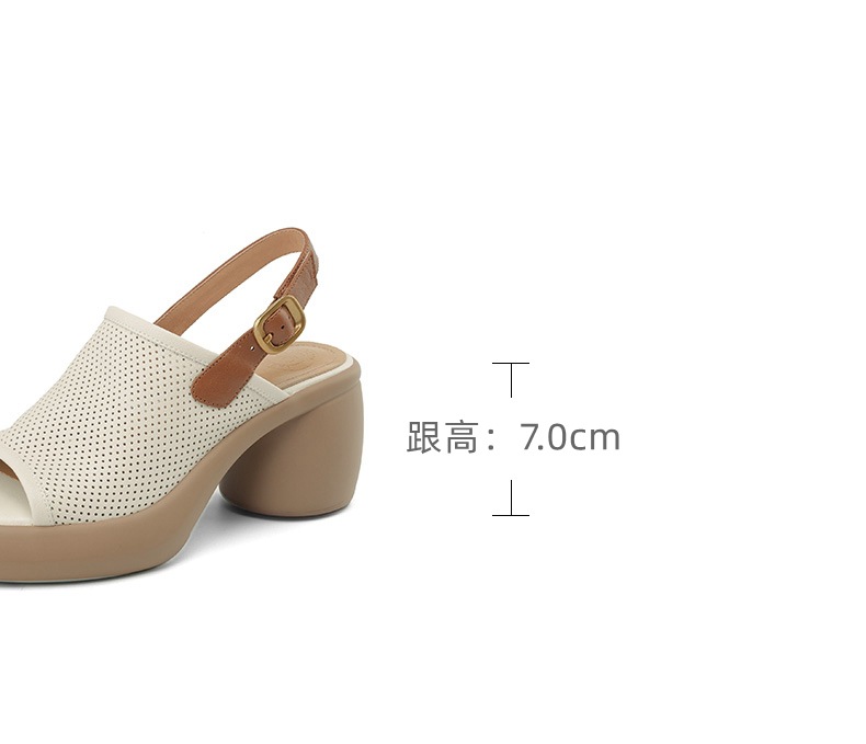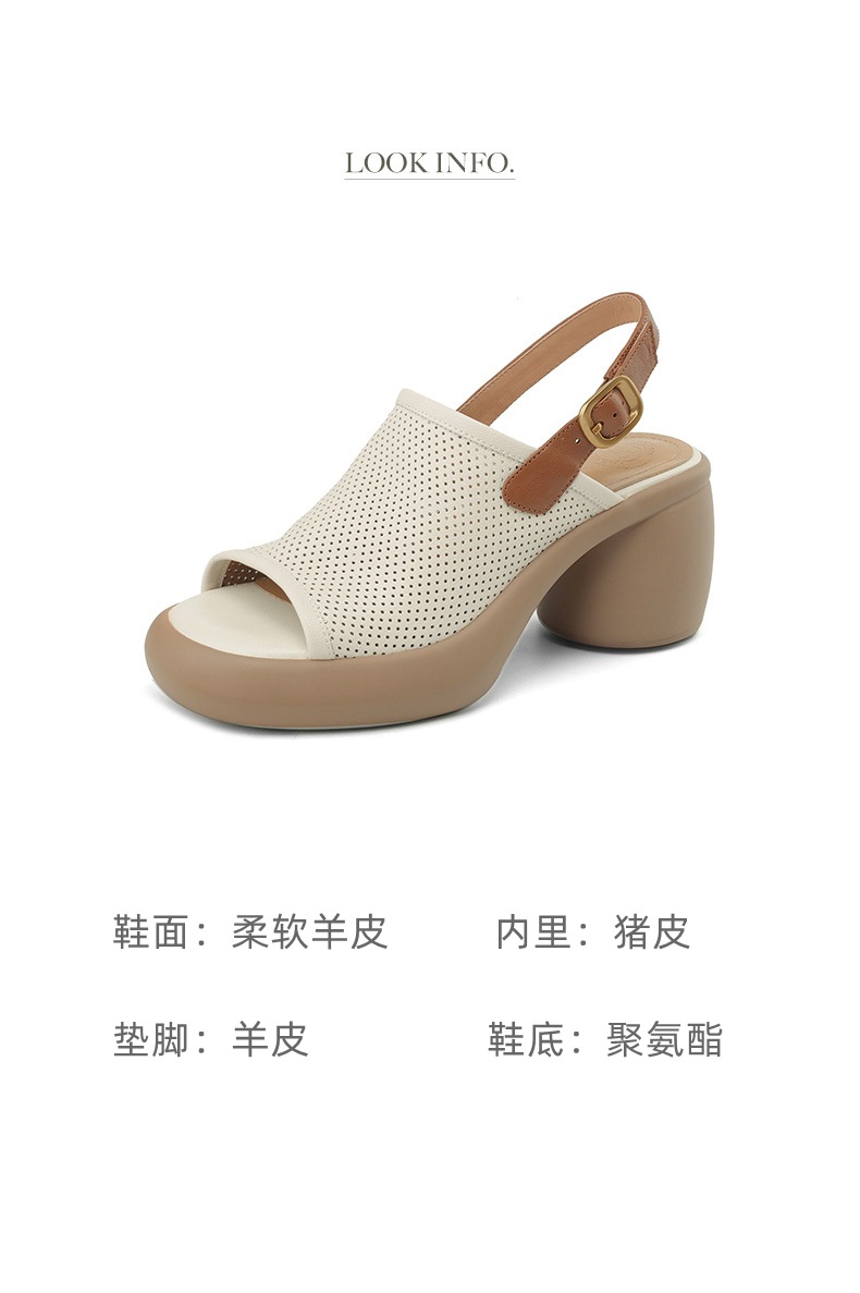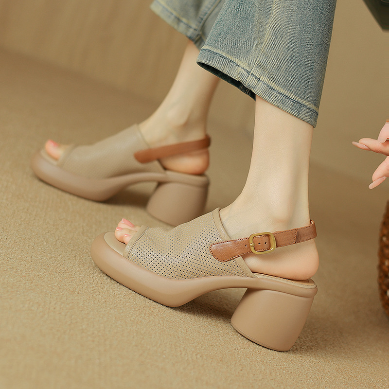 스톰프 느낌 정품 가죽 로마 샌들 여성의 2024 년 새 여름 여성 신발 생선 입 플랫폼 신발 두꺼운 힐 하이힐