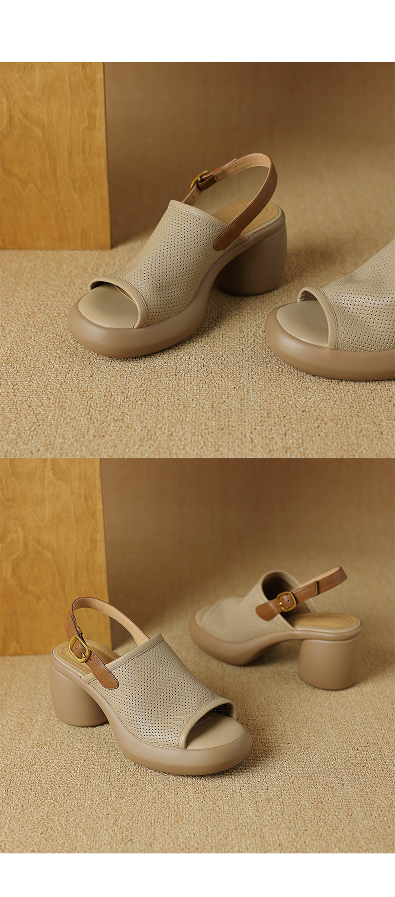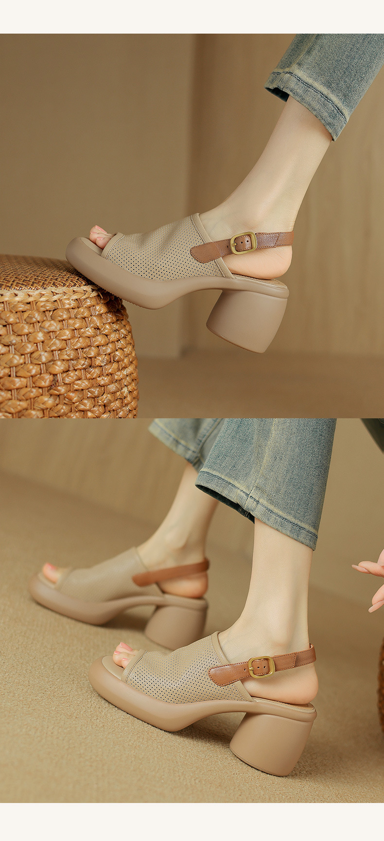 스톰프 느낌 정품 가죽 로마 샌들 여성의 2024 년 새 여름 여성 신발 생선 입 플랫폼 신발 두꺼운 힐 하이힐스토어 가기