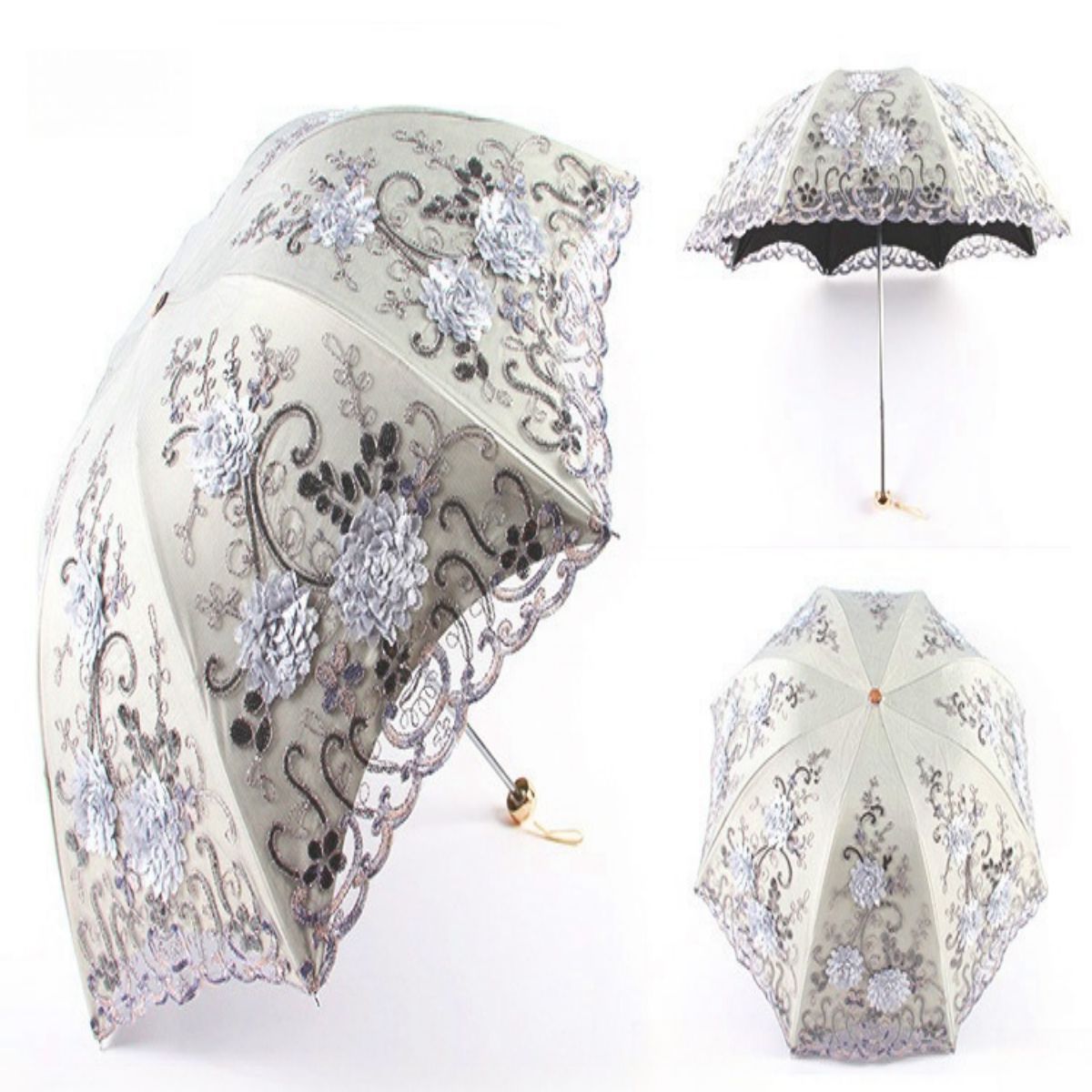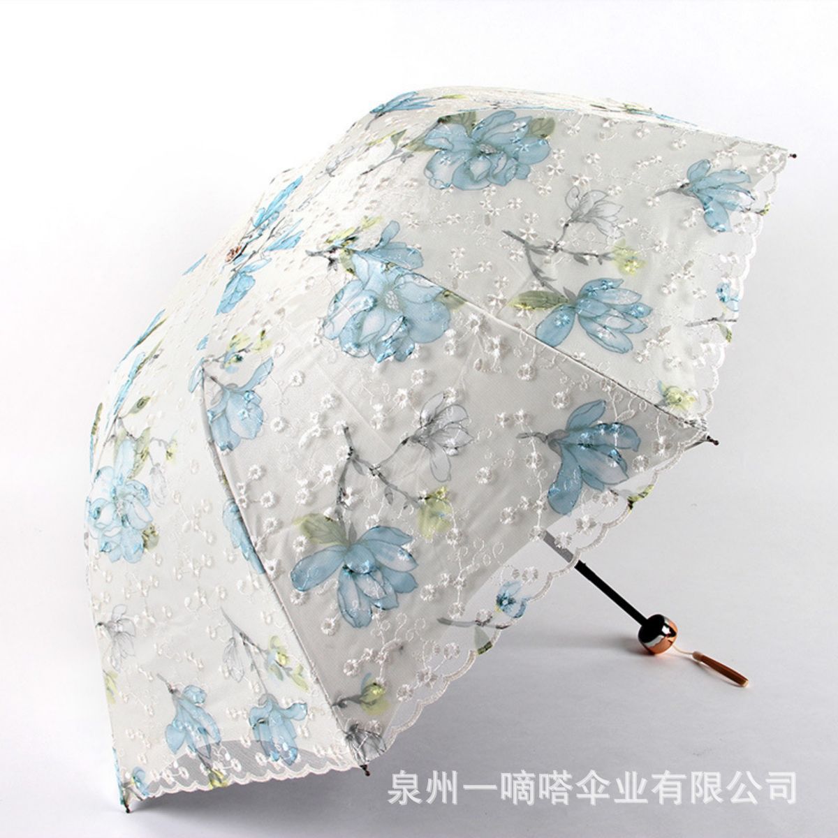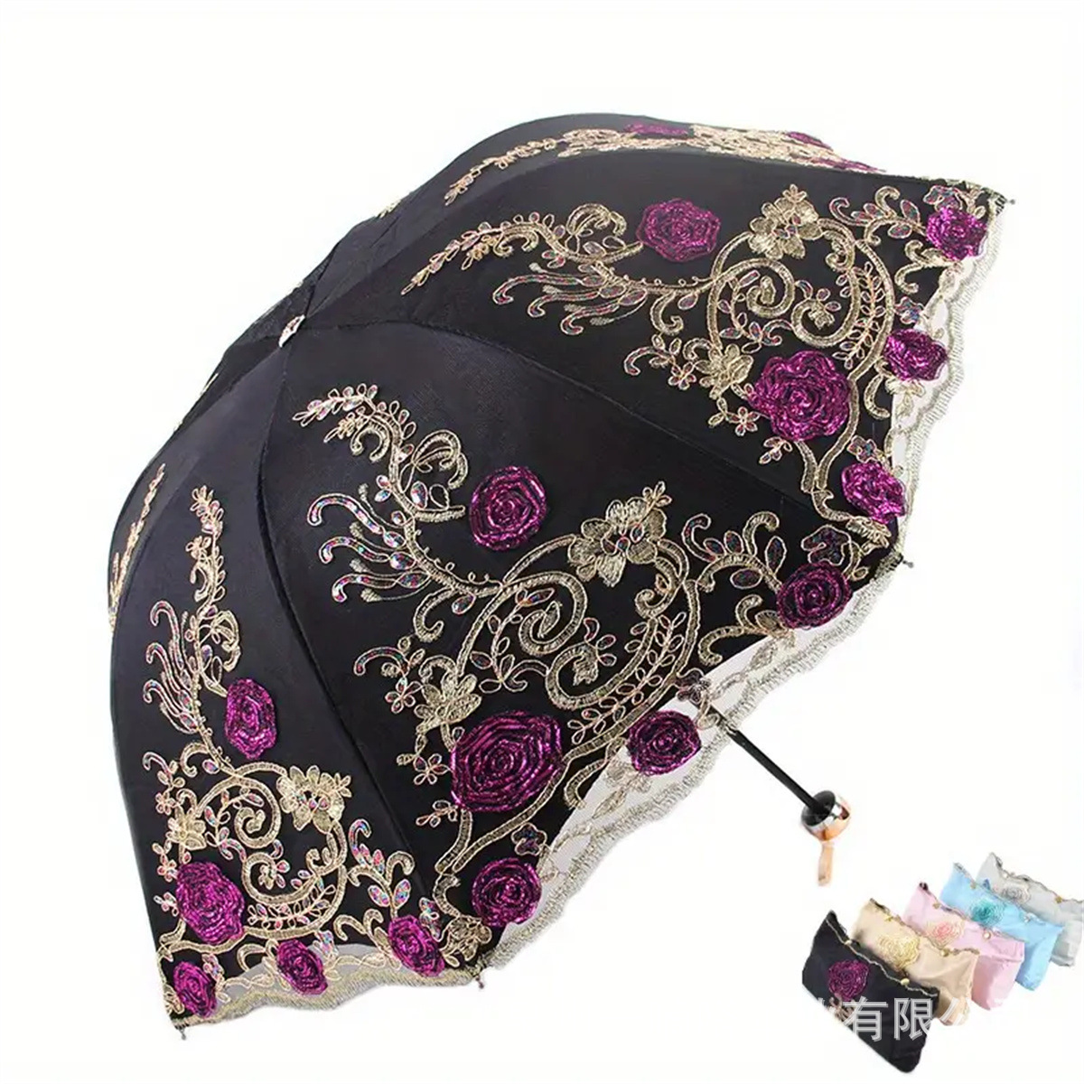 빈티지 자수 레이스 더블 비닐 3 배 우산 웨딩 우산을 접는 제조업체를위한 TEMU 국경스토어 가기