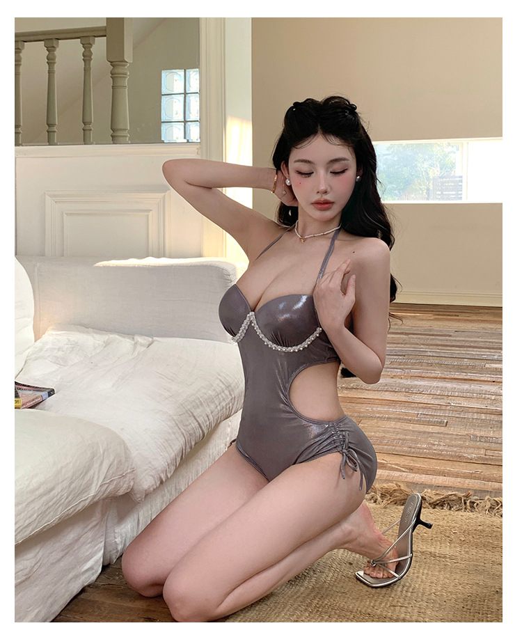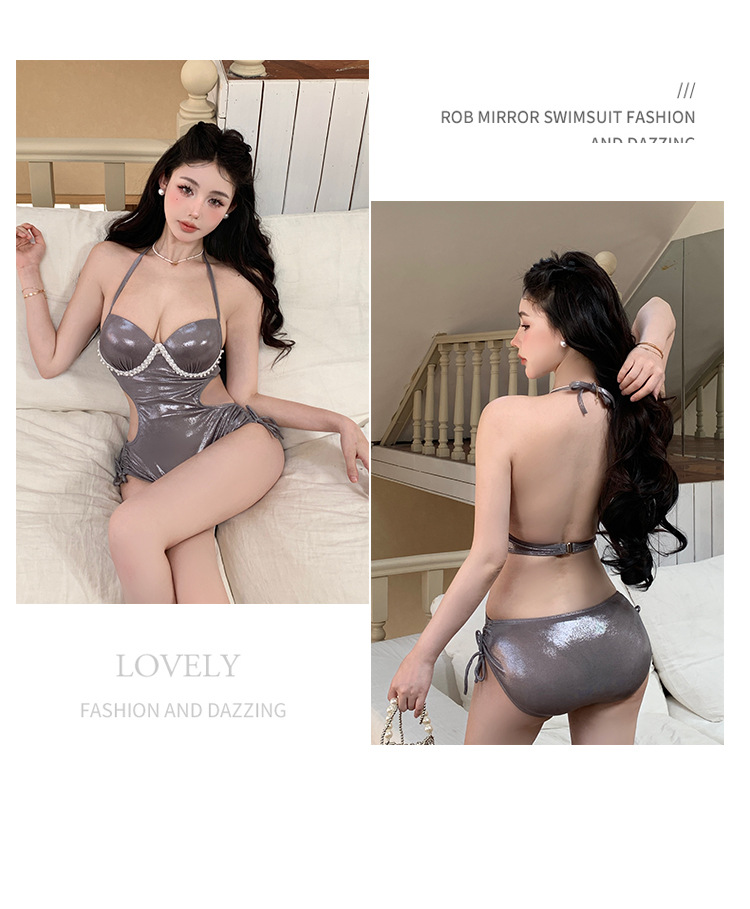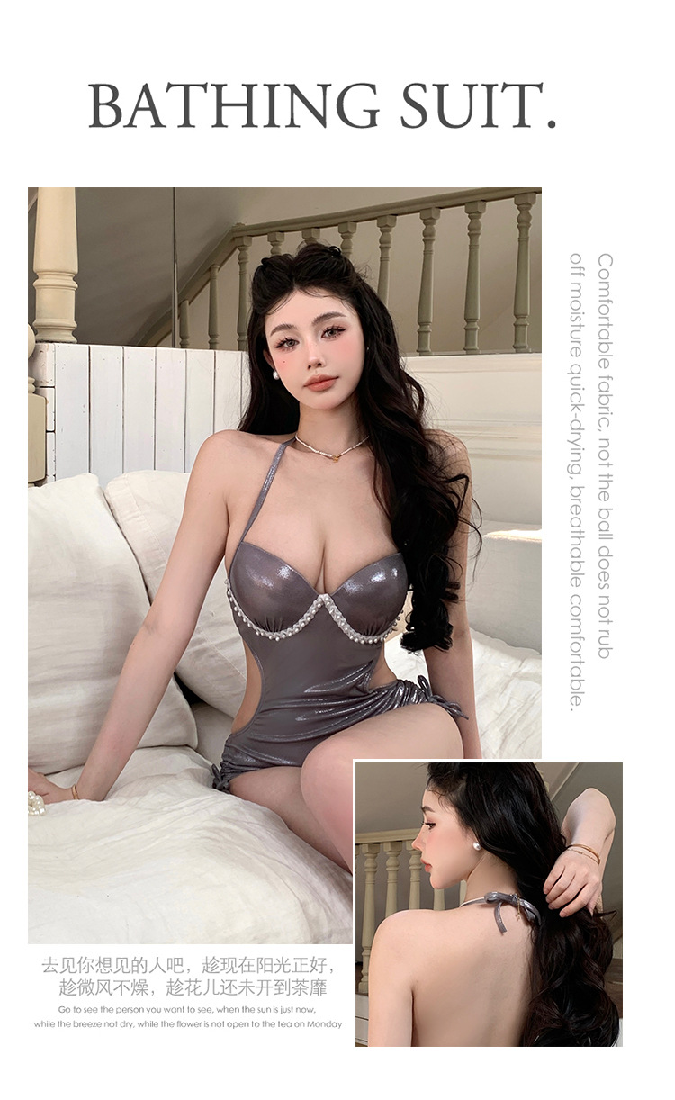 순수한 욕망 뜨거운 소녀 밝은 얼굴 수영복 여성 섹시한 원피스 목 작은 가슴 강철 지지대가 함께 모여 그물 레드, 바람 온천 수영복.