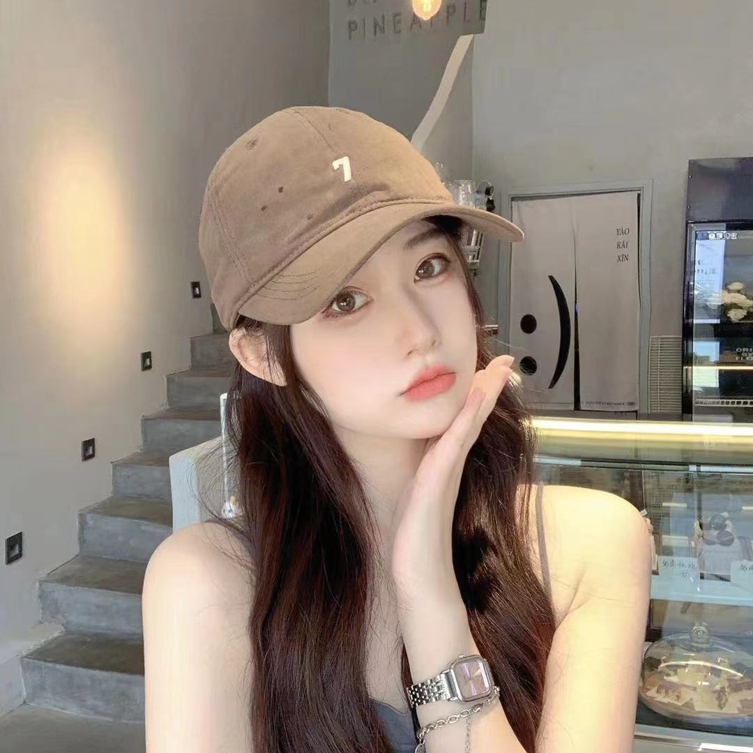 여성용 7번 야구 모자 2025년 신상 레트로 워싱 기모 자외선 차단 챙모자, 다양한 사이즈, 여성용 트렌디 모자스토어 가기