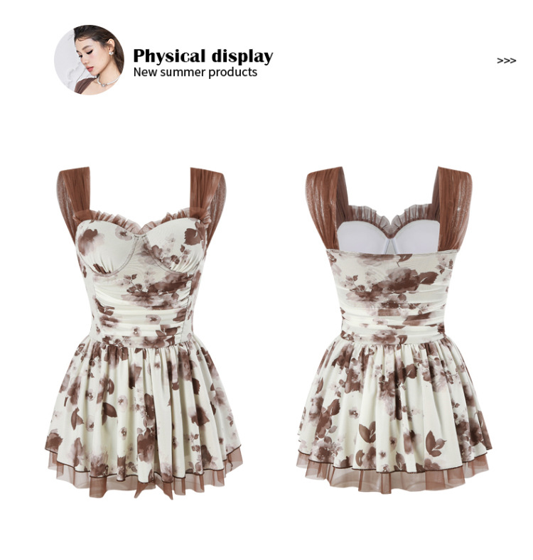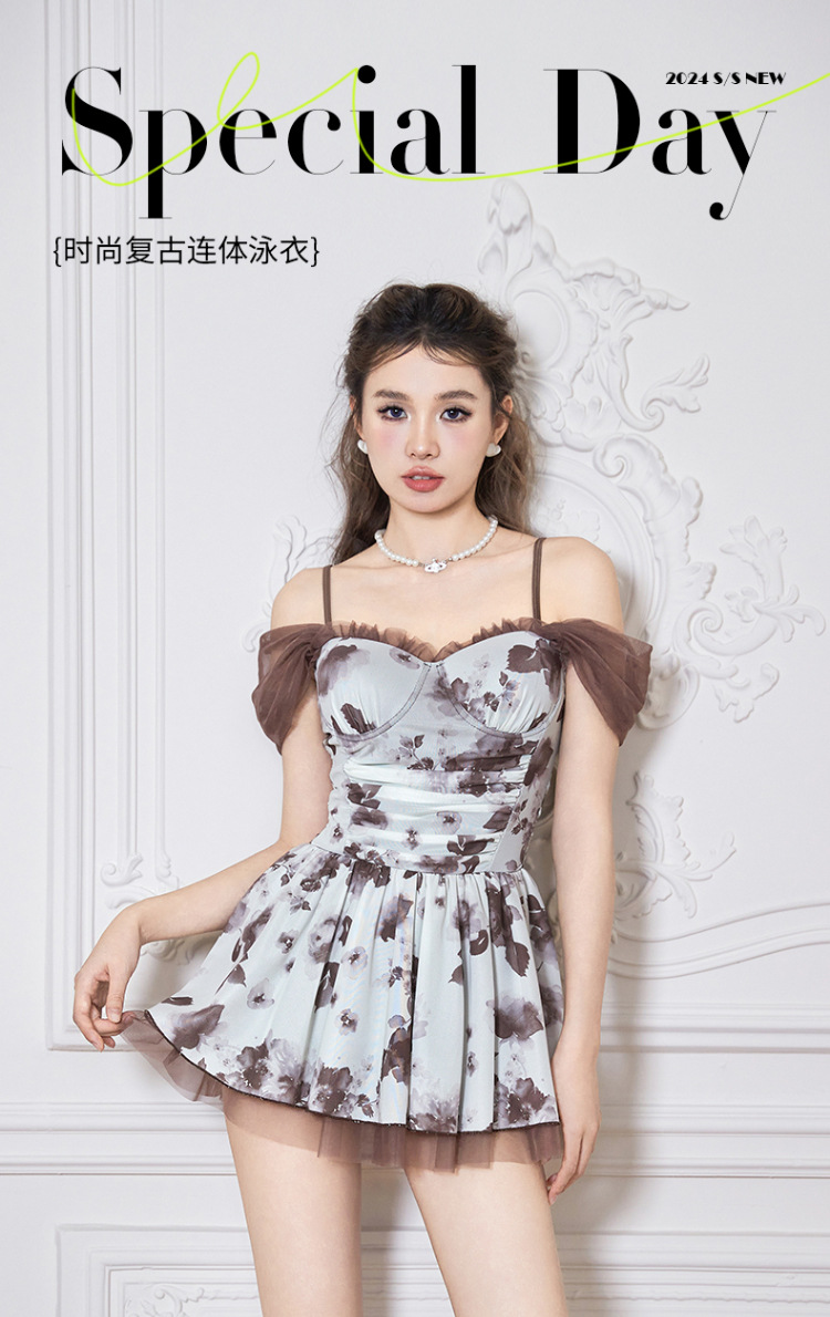 수영복 여성 여름 2024 새로운 싱크 인쇄 원피스 플랫 코너 보수적 인 섹시한 스틸 브래킷 모임 온천 수영복스토어 가기