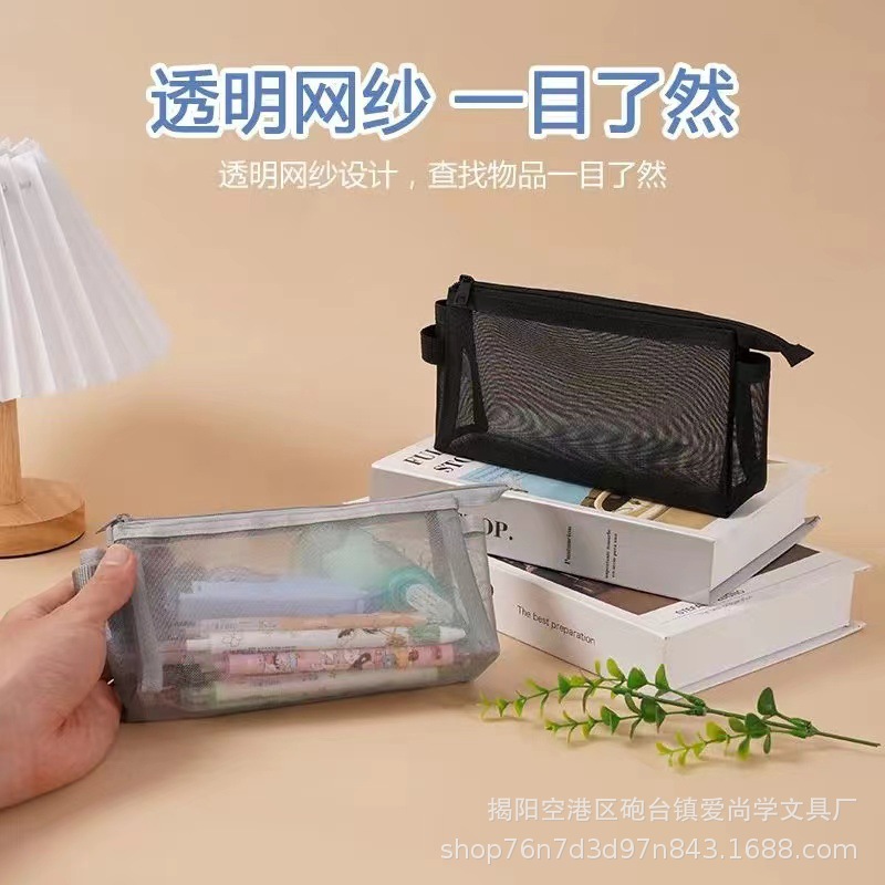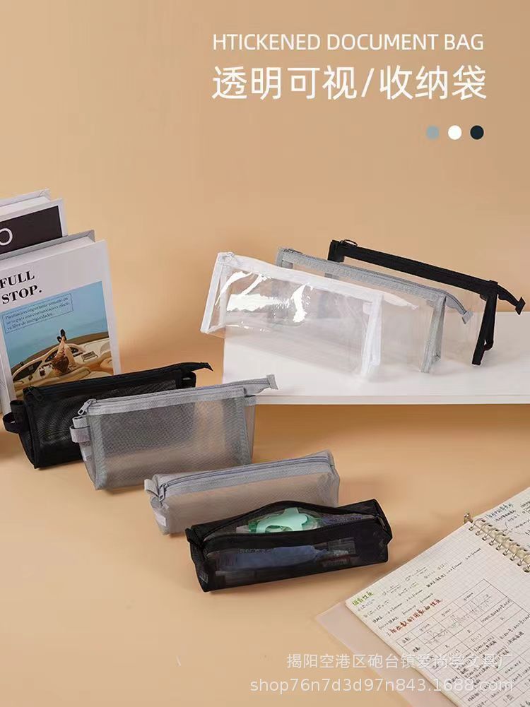 MUJI 문구 연필 가방 대용량 간단한 메쉬 투명 저장 가방 대학 입학 시험 문구 가방스토어 가기
