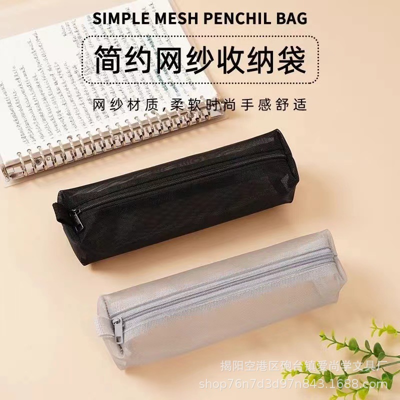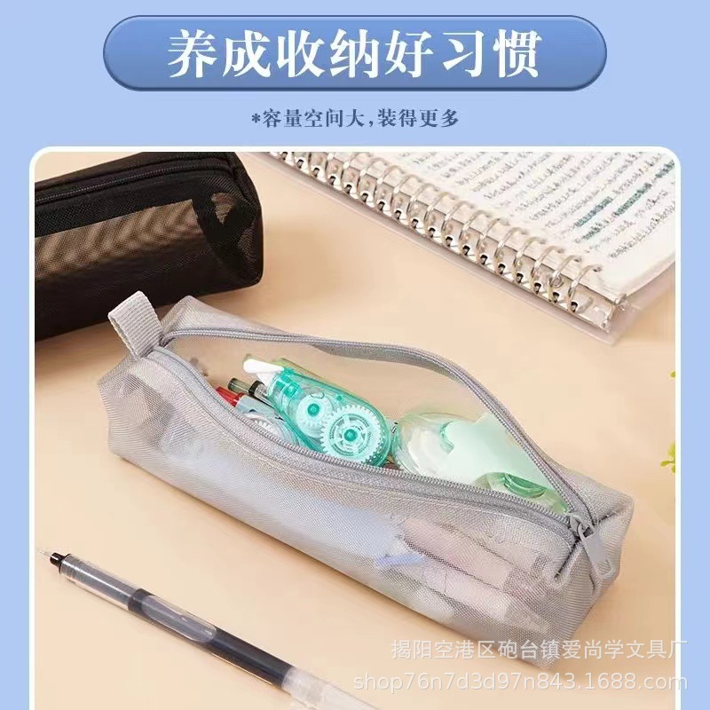 MUJI 문구 연필 가방 대용량 간단한 메쉬 투명 저장 가방 대학 입학 시험 문구 가방
