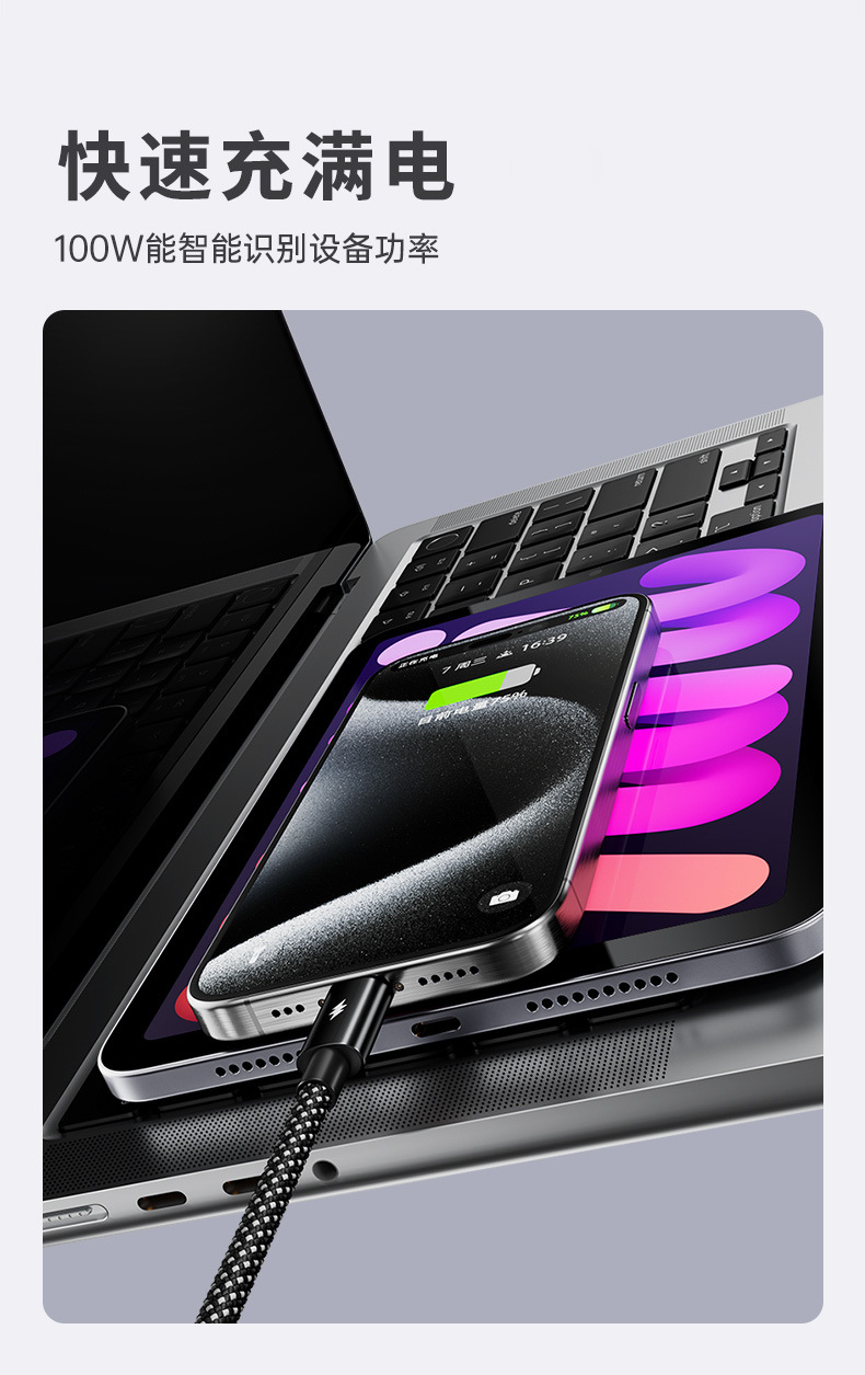 자동 저장 자기 데이터 케이블 100W 초고속 충전은 Apple 16 Android 태블릿 확장 자동차 TC에 적합합니다.스토어 가기