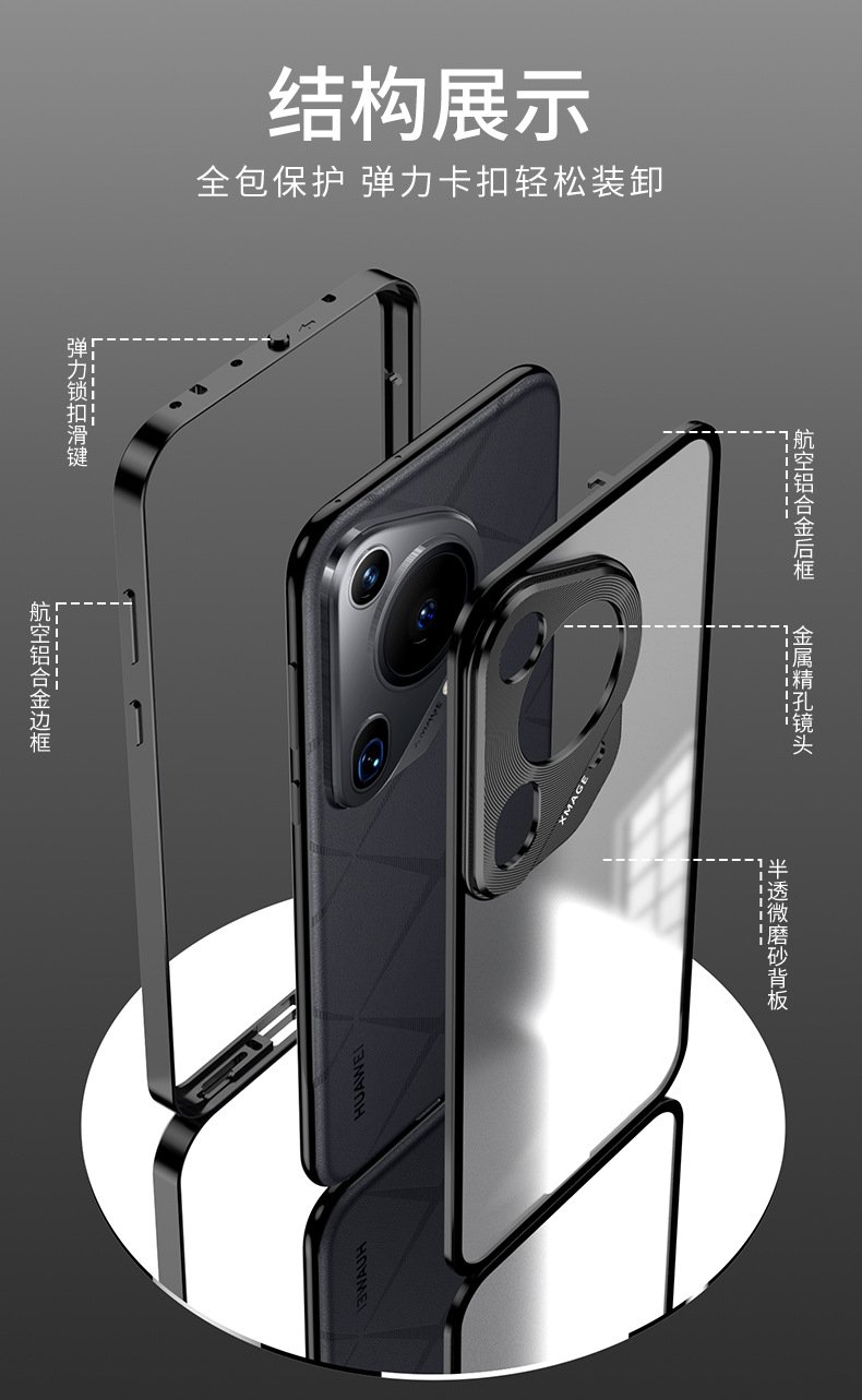 화웨이 P70pro 금속 프레임 단면 스크럽 버클 프로스트 PC 아크릴 백 패널 전화 케이스 p70ultra스토어 가기