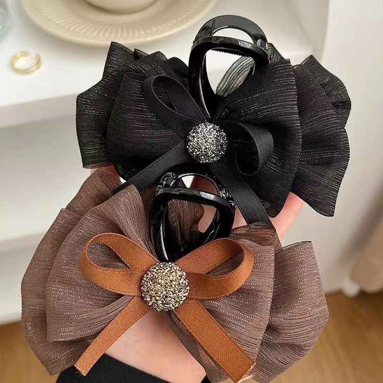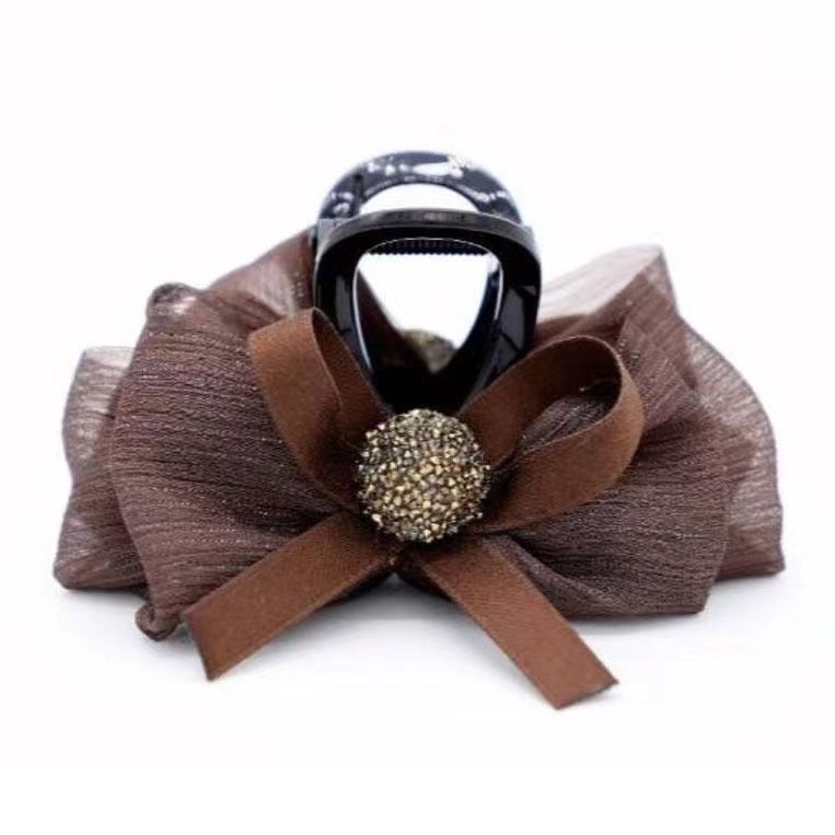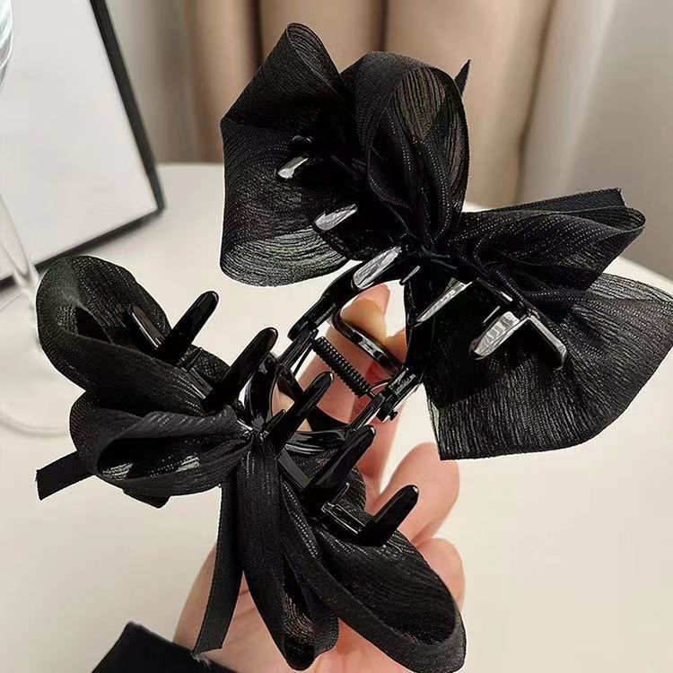 • 밝은 실크 나비 비드 버블 캐치 클립 [A29] 블랙 [11CM]