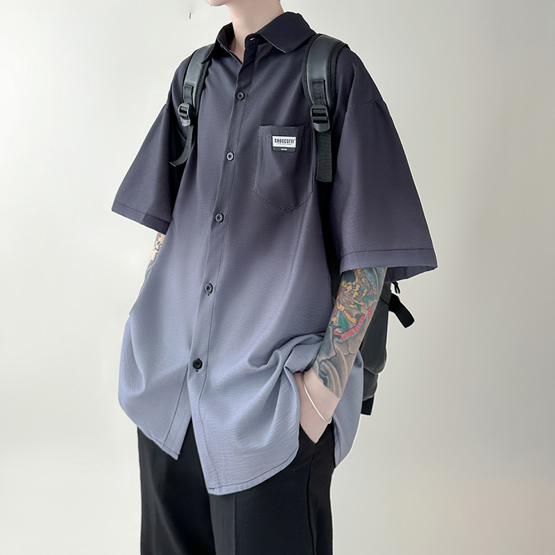 그라디언트 반팔 셔츠 남자의 여름 얇은 느슨한 플러스 사이즈 캐주얼 반소매 셔츠 아메리칸 스타일 하이 스트리트 패션 브랜드 재킷스토어 가기