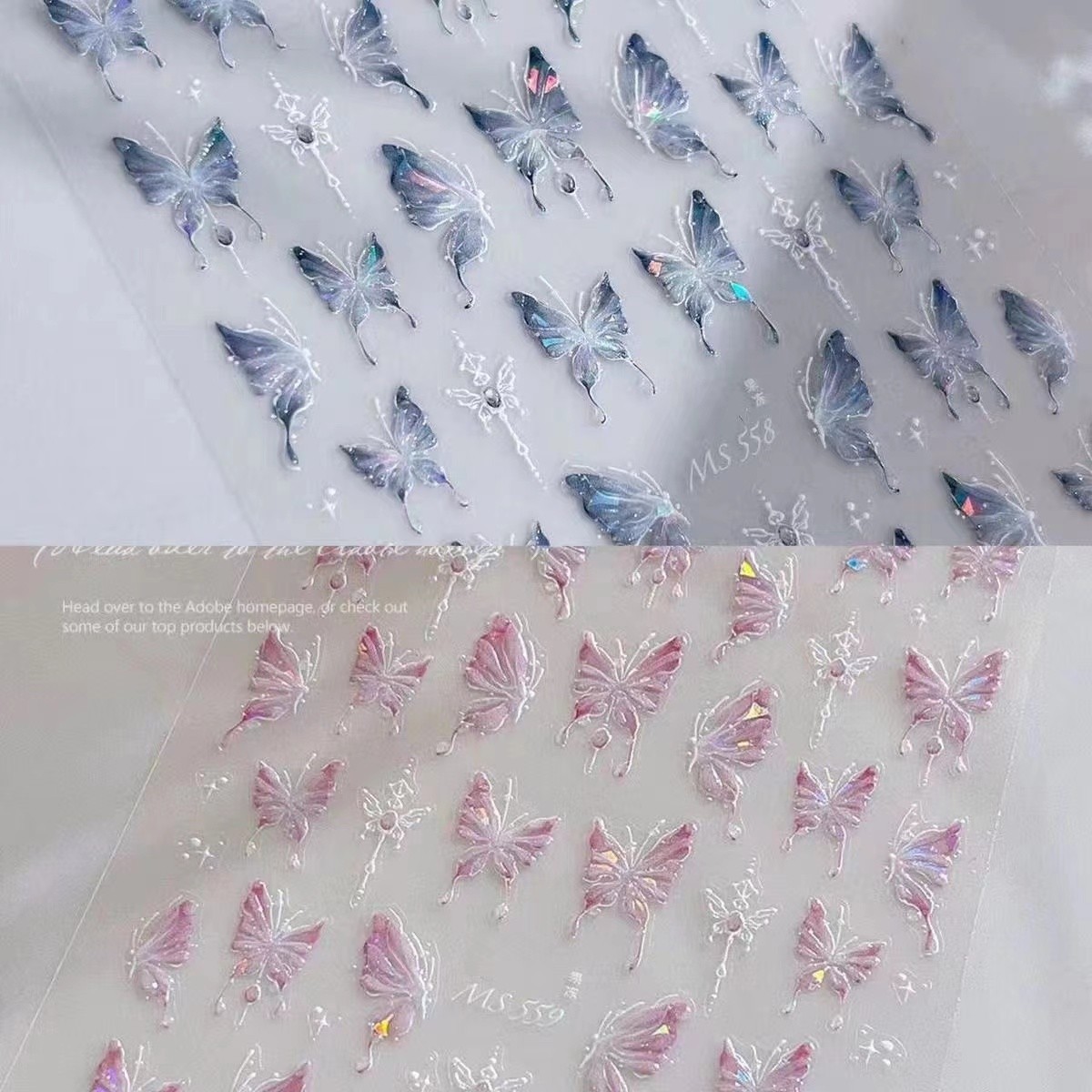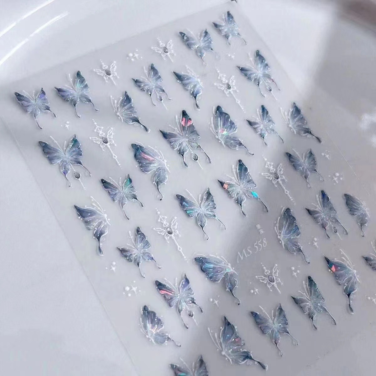 폭발 슈퍼 요정 스마트 아이스 블루 나비 네일 아트 스티커 골동품 술 틈새 나비 고급 네일 아트 스티커스토어 가기