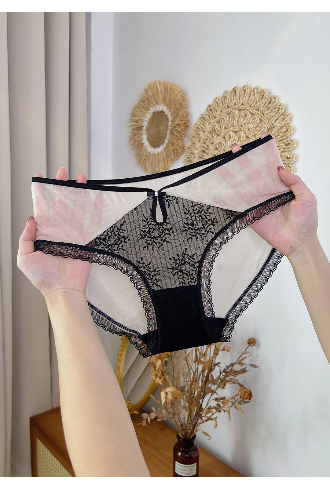 섹시한 경량 순수한 욕망 스타일 레이스 여성 속옷 편안한 통기성 낮은 허리 비 마킹 브리프 국가 스타일 투명 메쉬