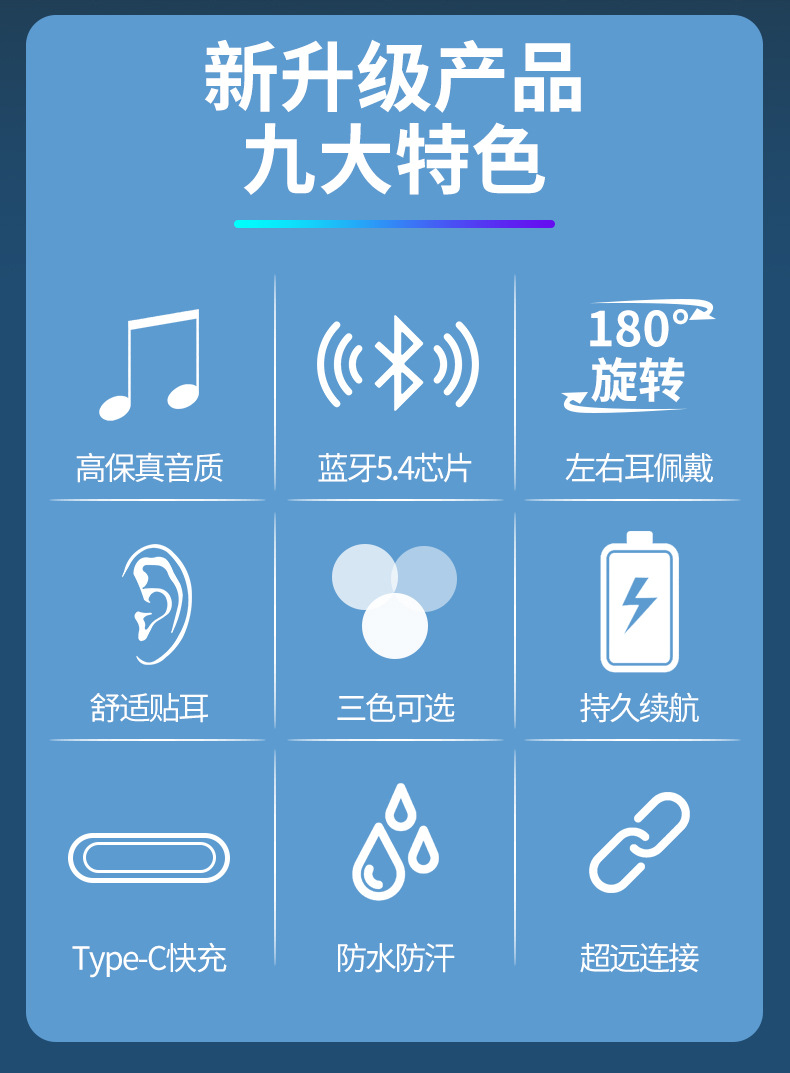 국경 간 새로운 V9 오픈 교수형 귀 무선 블루투스 헤드셋 단일 귀 비즈니스 스포츠 음악 헤드셋 긴 내구성