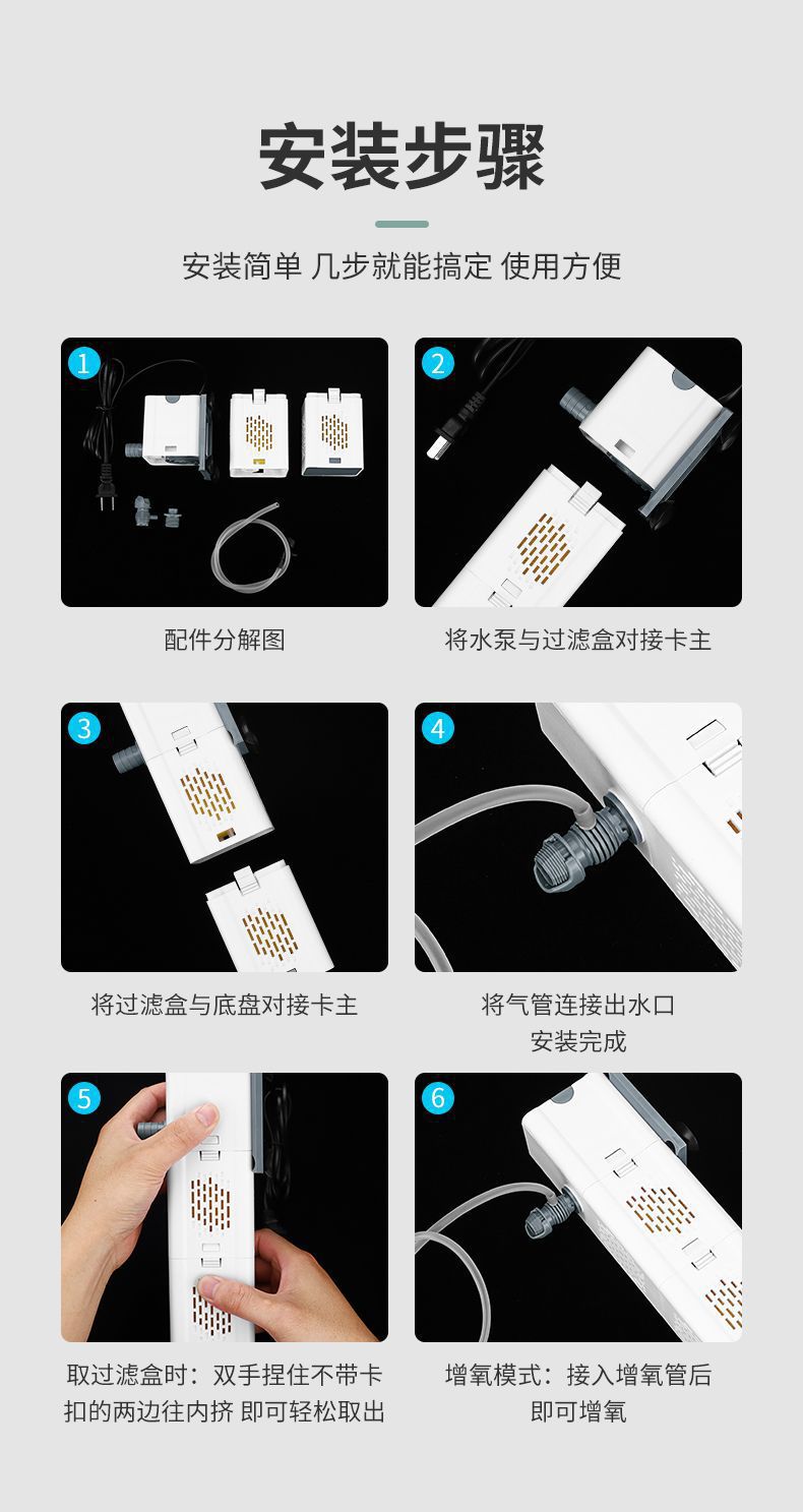 물고기 탱크 필터 물 순환 시스템 물 펌프 3 대 1 자동 수족관 필터 펌프 내장 산소 펌프 올인원 기계