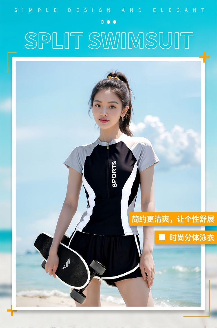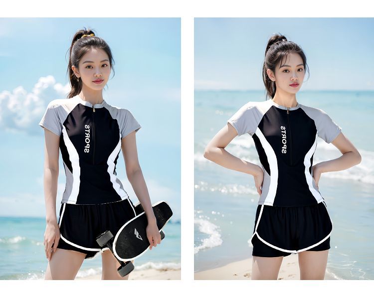 여성용 스플릿 수영복 2025 새로운 스타일의 고급 보수적 슬리밍 배꼽 커버 수영장 속건성 스포츠 복서 수영복스토어 가기