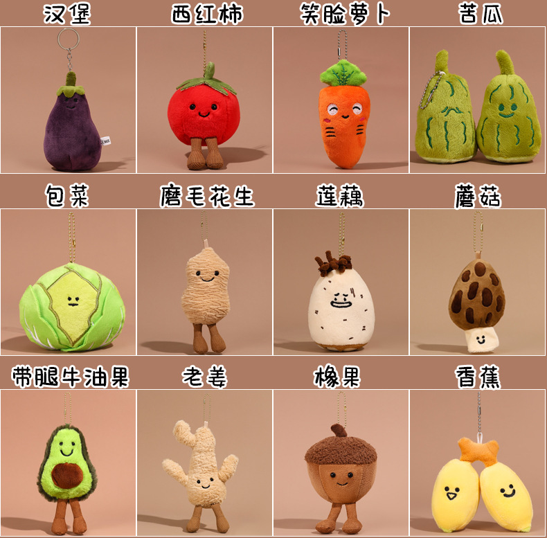 창의적인 야채, 재미있는 표정, 양파, 생강, 마늘, 과일 및 식물, 봉제 펜던트, 열쇠고리, 인형뽑기 인형 도매