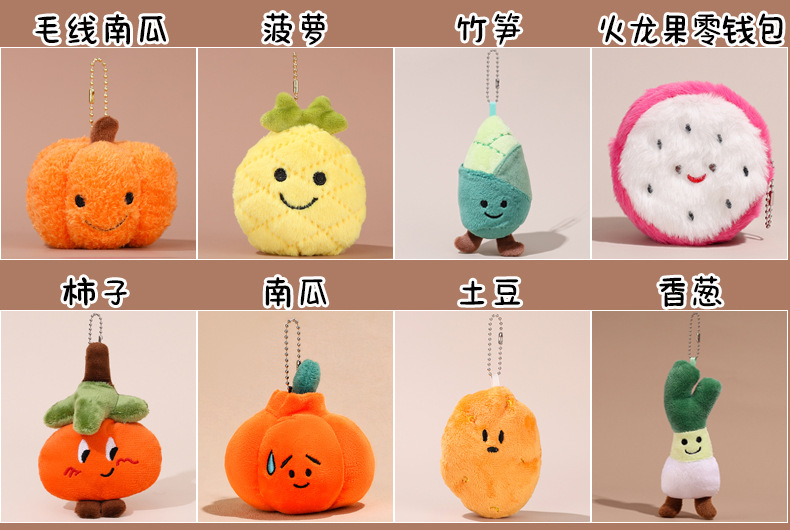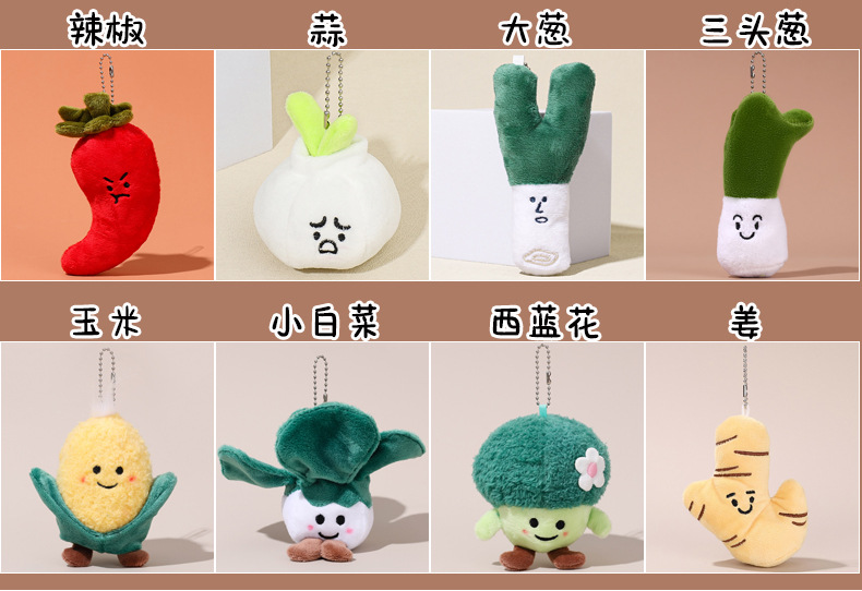 창의적인 야채, 재미있는 표정, 양파, 생강, 마늘, 과일 및 식물, 봉제 펜던트, 열쇠고리, 인형뽑기 인형 도매스토어 가기