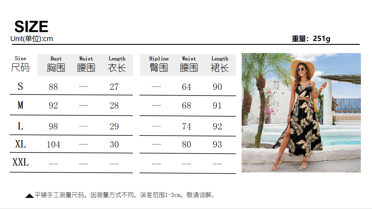국경 간 멜빵, 하이 스플릿 미드 길이 스커트 오버 스커트 세트 여름 투피스 하이 엔드 대외 무역 캐주얼 세트 여성 의류스토어 가기