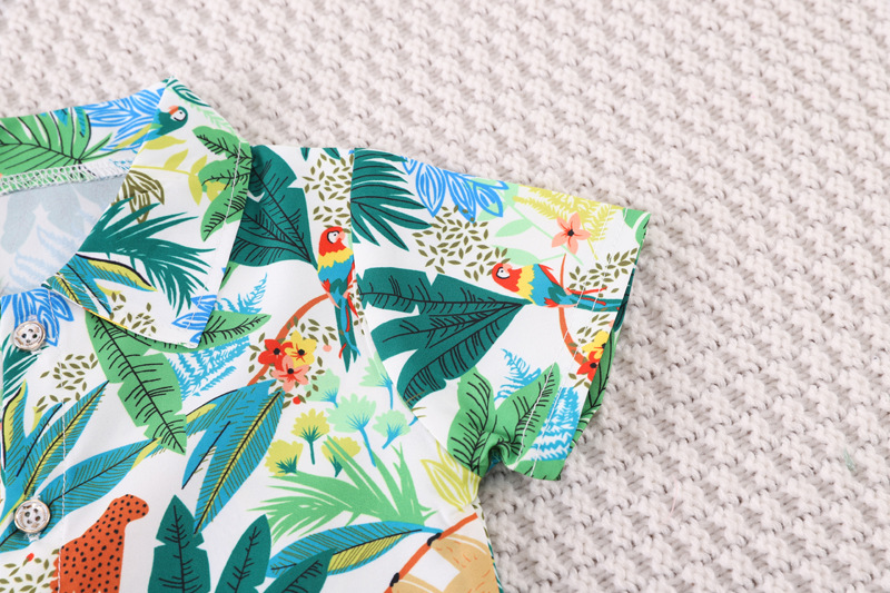 국경 간 아동복 어린이 하와이안 스타일 꽃 셔츠 0-4 세 소년 풀 프린트 코코넛 나무 짧은 소매 티셔츠 2 피스 세트
