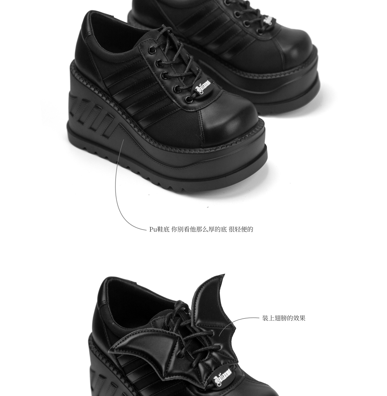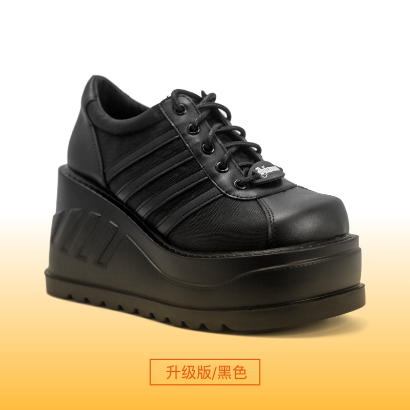 블랙 방수 옥스포드 천 데모니아 플랫폼 신발 여성 9cm 높이 증가 작은 가죽 신발 레이스 업 다크 스타일 신발스토어 가기