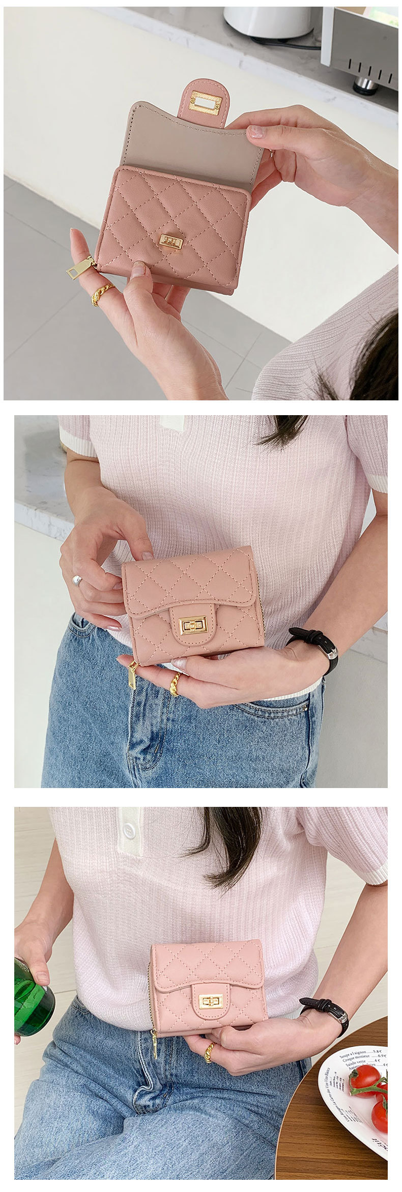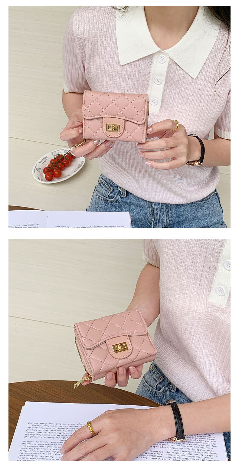 지갑 새로운 한국식 지갑 여성용 마름모꼴 간단한 잠금 동전 지갑 학생 카드 가방 트렌디 클러치