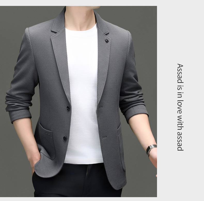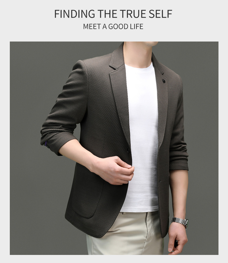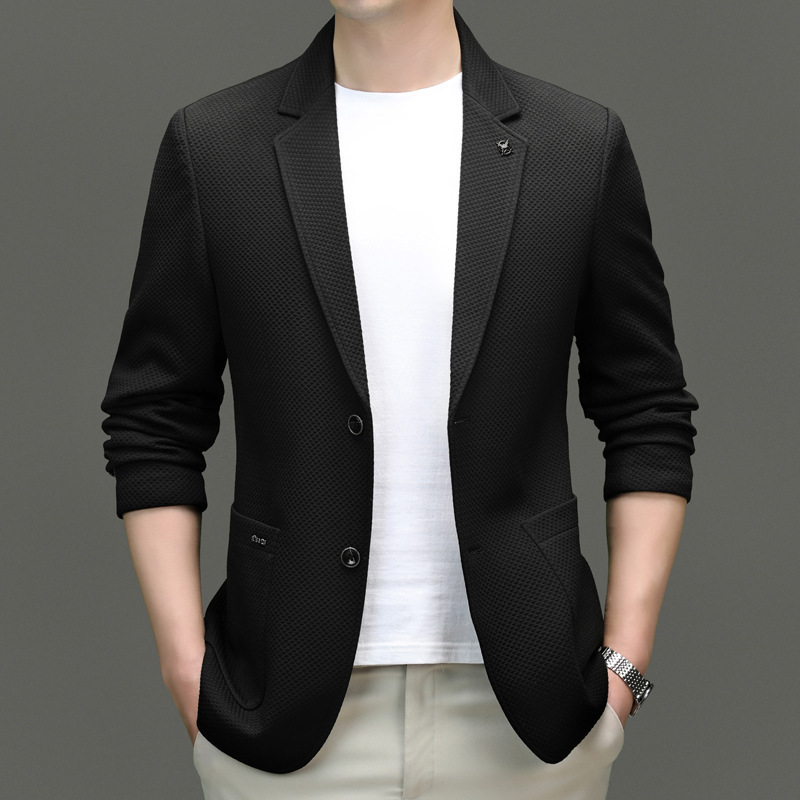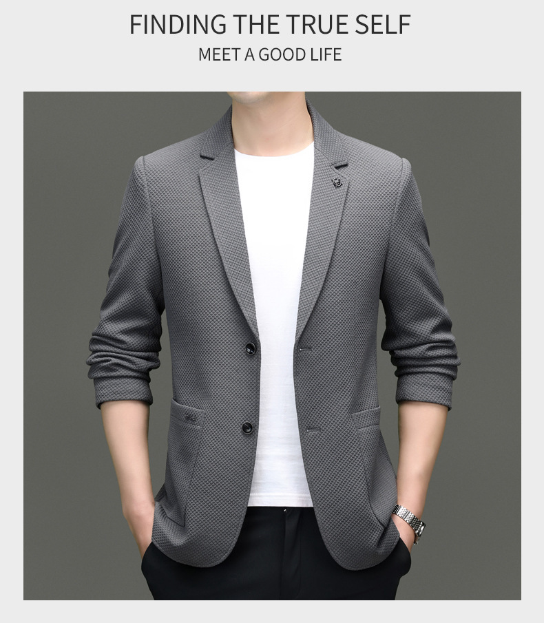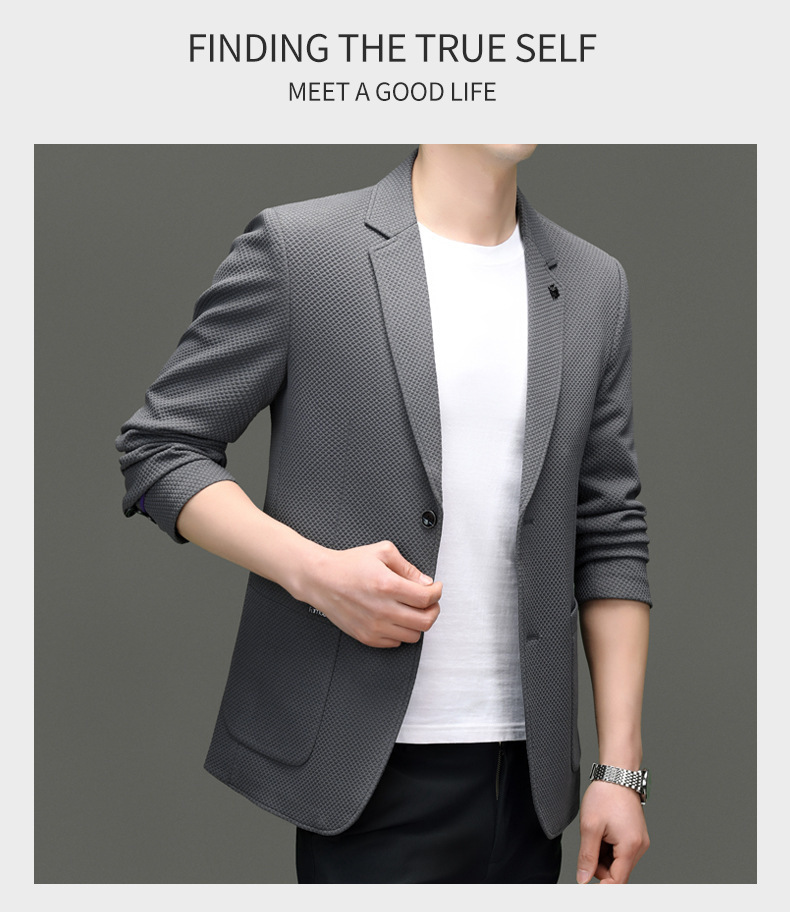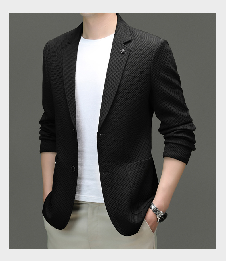 2024春季新款针织华夫格休闲单西男士西装外套商务时尚中青年