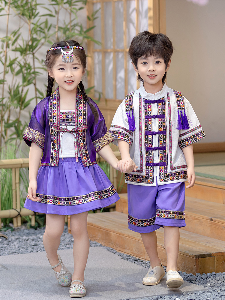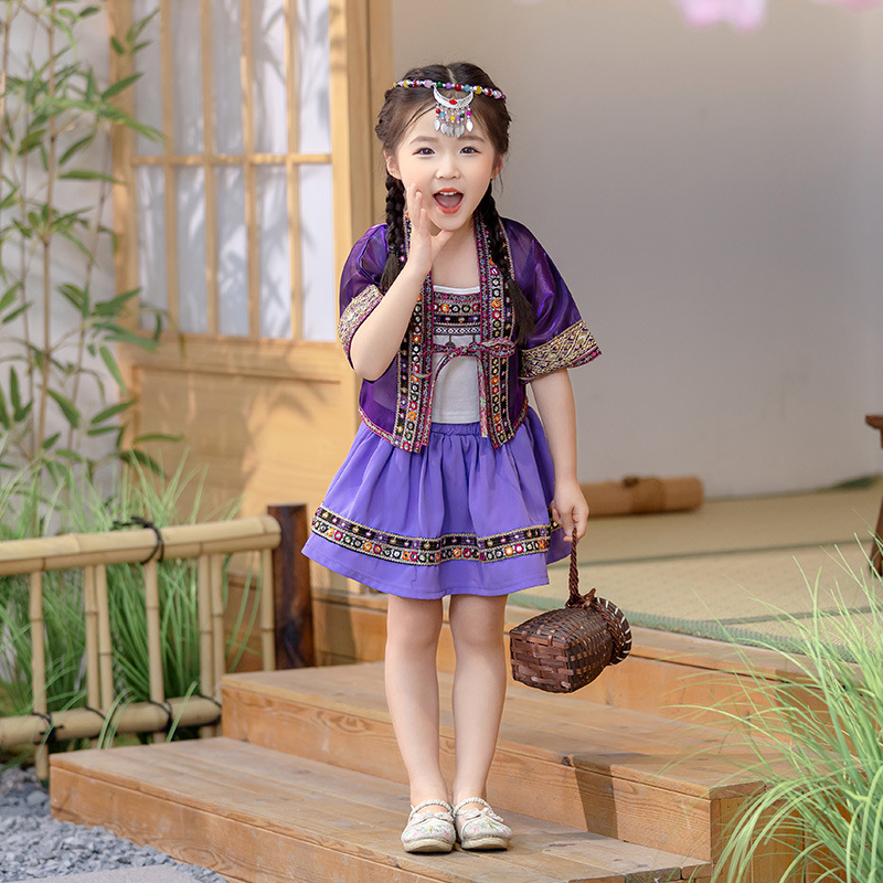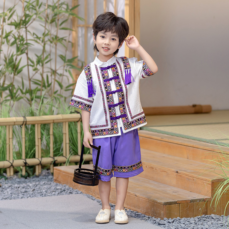 어린이 3 월 3 일 공연 옷 소년 세트 여름 옷 아기 소녀 유치원 이국적인 Miao Dai 댄스 옷스토어 가기