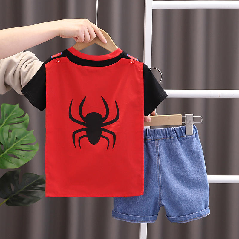 어린이 작은 점프 새로운 여름 옷 아기 캐주얼 잘 생긴 패션 얇은 만화 둥근 목 짧은 소매 세트 도매 조수스토어 가기