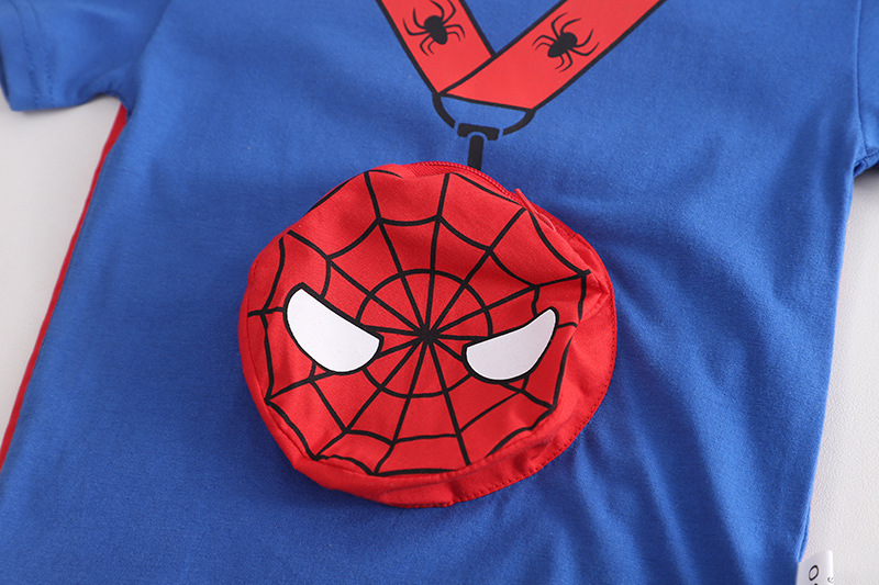 어린이 작은 점프 새로운 여름 옷 아기 캐주얼 잘 생긴 패션 얇은 만화 둥근 목 짧은 소매 세트 도매 조수