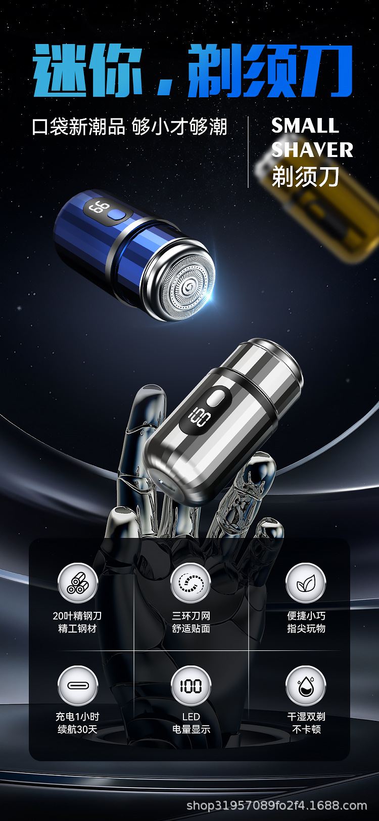 원통형 뜨거운 판매 미니 전기 면도기 자동차 남자의 편리한 여행 면도기 머리 세척 가능스토어 가기