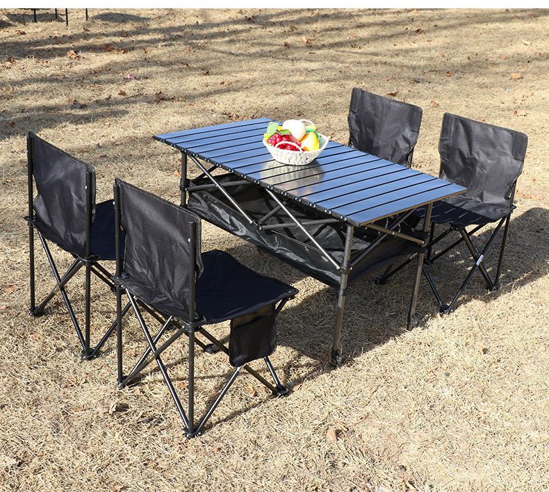 야외 접이식 테이블 계란 롤 테이블 리프팅 테이블 캠핑 테이블 전체 세트 캠핑 장비 휴대용 피크닉 테이블 및 의자스토어 가기