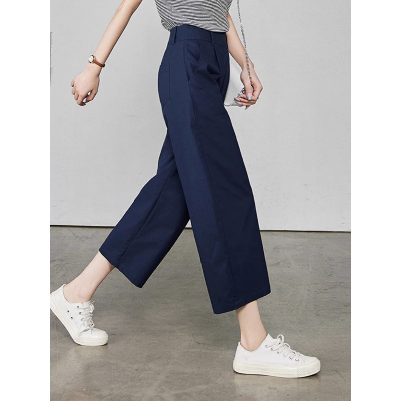 여성용 캐주얼 루즈핏 슬림 와이드 팬츠, 하이웨이스트 얇은 화이트 9부 팬츠, 다리가 길어보이는 패셔너블한 디자인스토어 가기